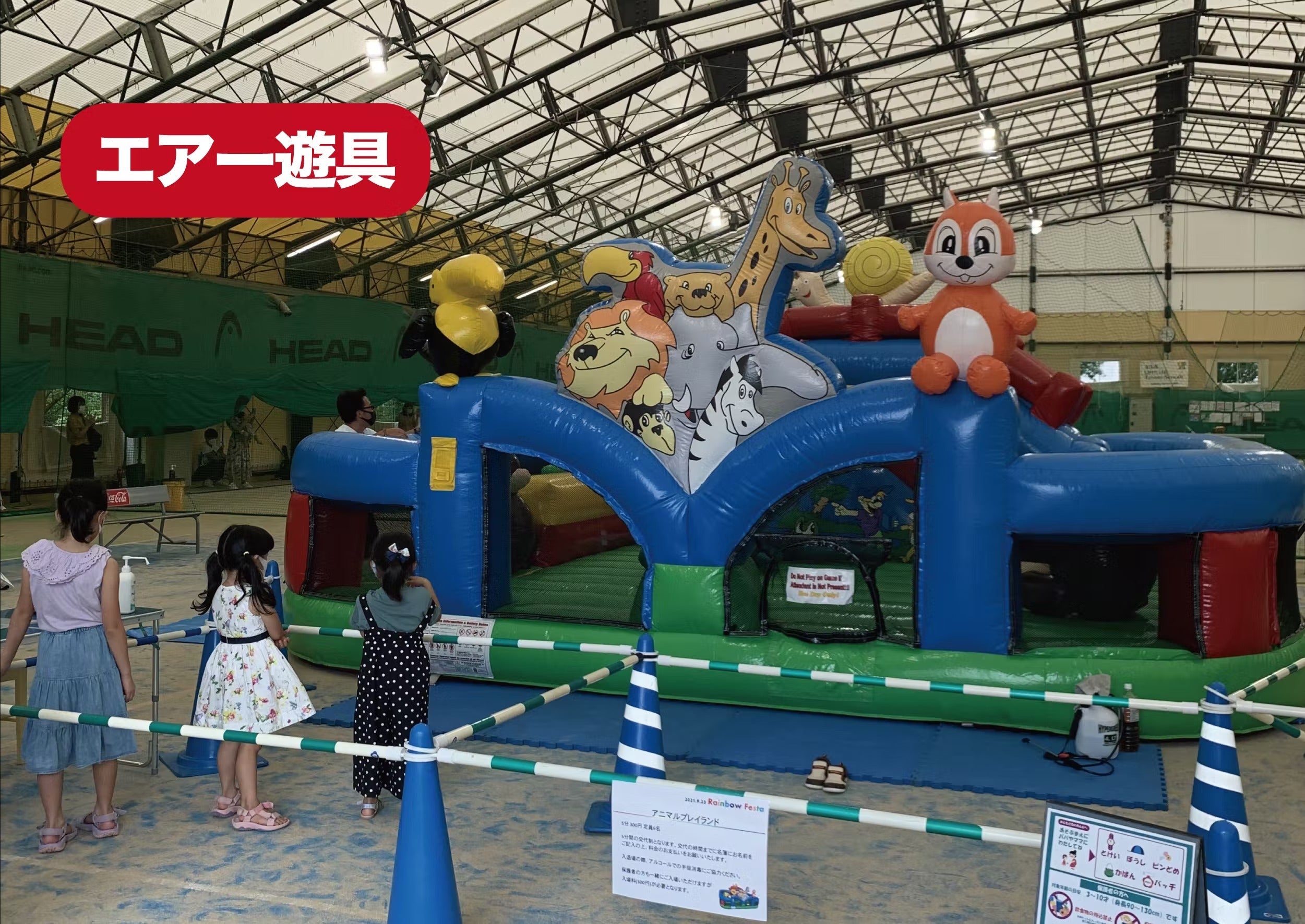 それでも我々は開催を諦めきれず、彩都の子供たちに笑顔を届けるべく、自社独自で有志を募り、規模を縮小し「Rainbow Festa」を開催することにしました。規模は縮小しましたが、多くの子供たちやご近所の方々が来てくださり、テニスコートでの縁日やふわふわエアー遊具、テニスイベントでたくさんの笑顔を届けることができました。