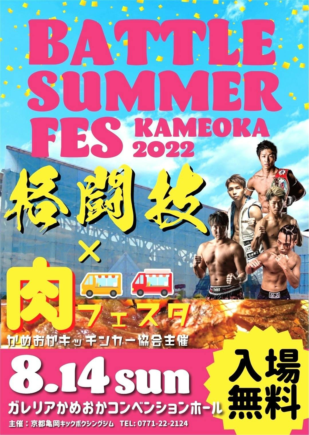 8月に『バトル・サマー・フェス』というアマチュアの格闘技大会を京都府亀岡市にて開催します。プロのライセンスを持たない選手、女性、キッズが出場できる大会です。