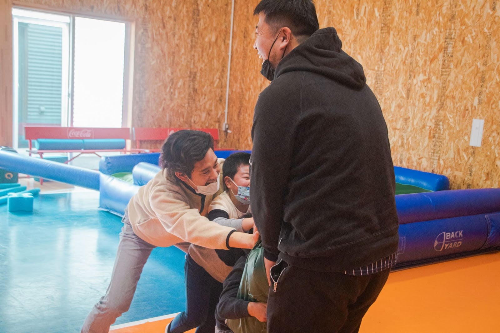 F:もちろんJCにもやっぱり子育て世代は多々いるので、もちろんそういう話も今までもしたことあるし、ただ新しいところでの挑戦となるとコロナ禍では事業の継続が最重要課題となってしまうよね。だからこそ俺みたいな馬鹿野郎みたいなやつがしっかりこう作ってあげないと子どもが遊ぶ場所とか過ごす場所がないね. 社会資源増えないよね、だから今頑張ってる感じ。