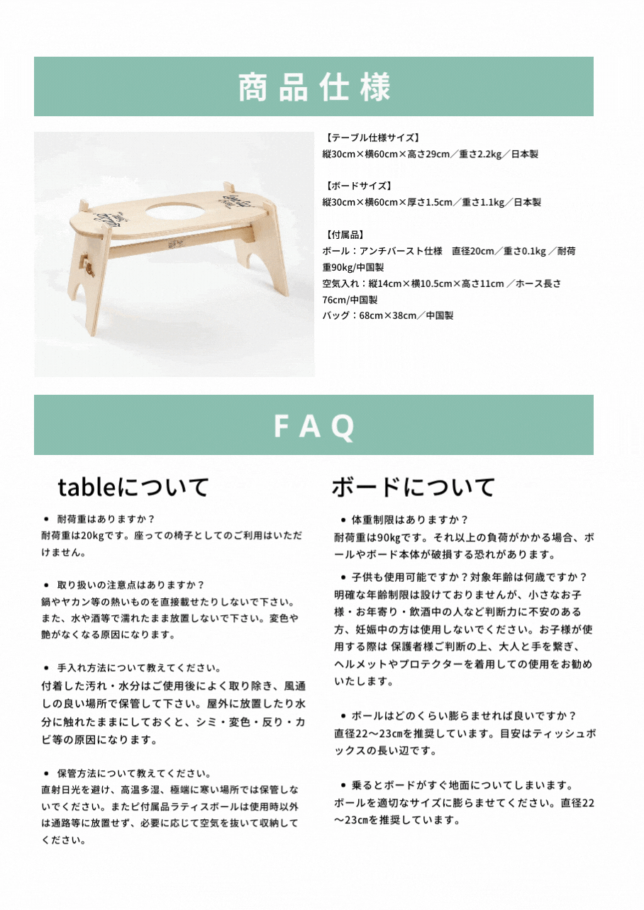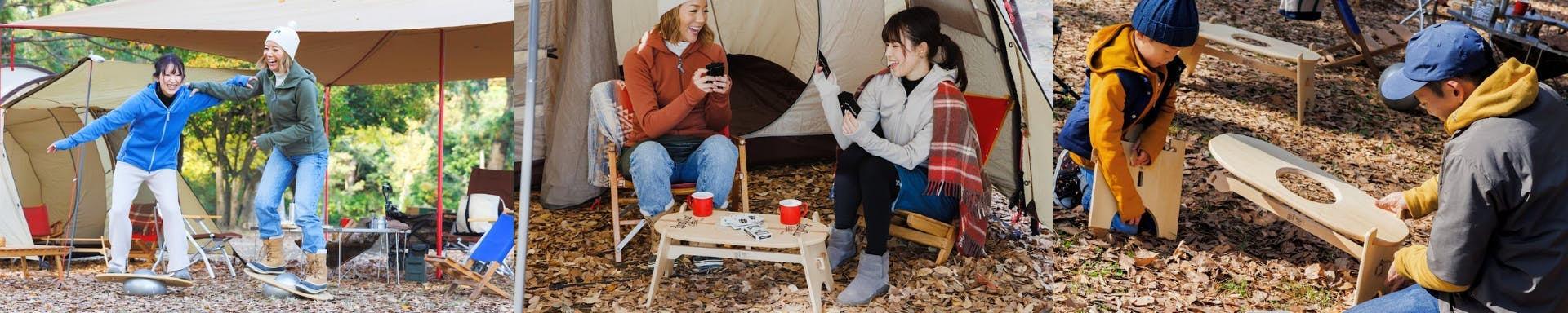 キャンプ場などアウトドアシーンで自然を楽しみながら、もちろんおうち時間でも家族やお友達と一緒にワイワイとアクティビティ として、トレーニングボードとして遊んだ後は・・・