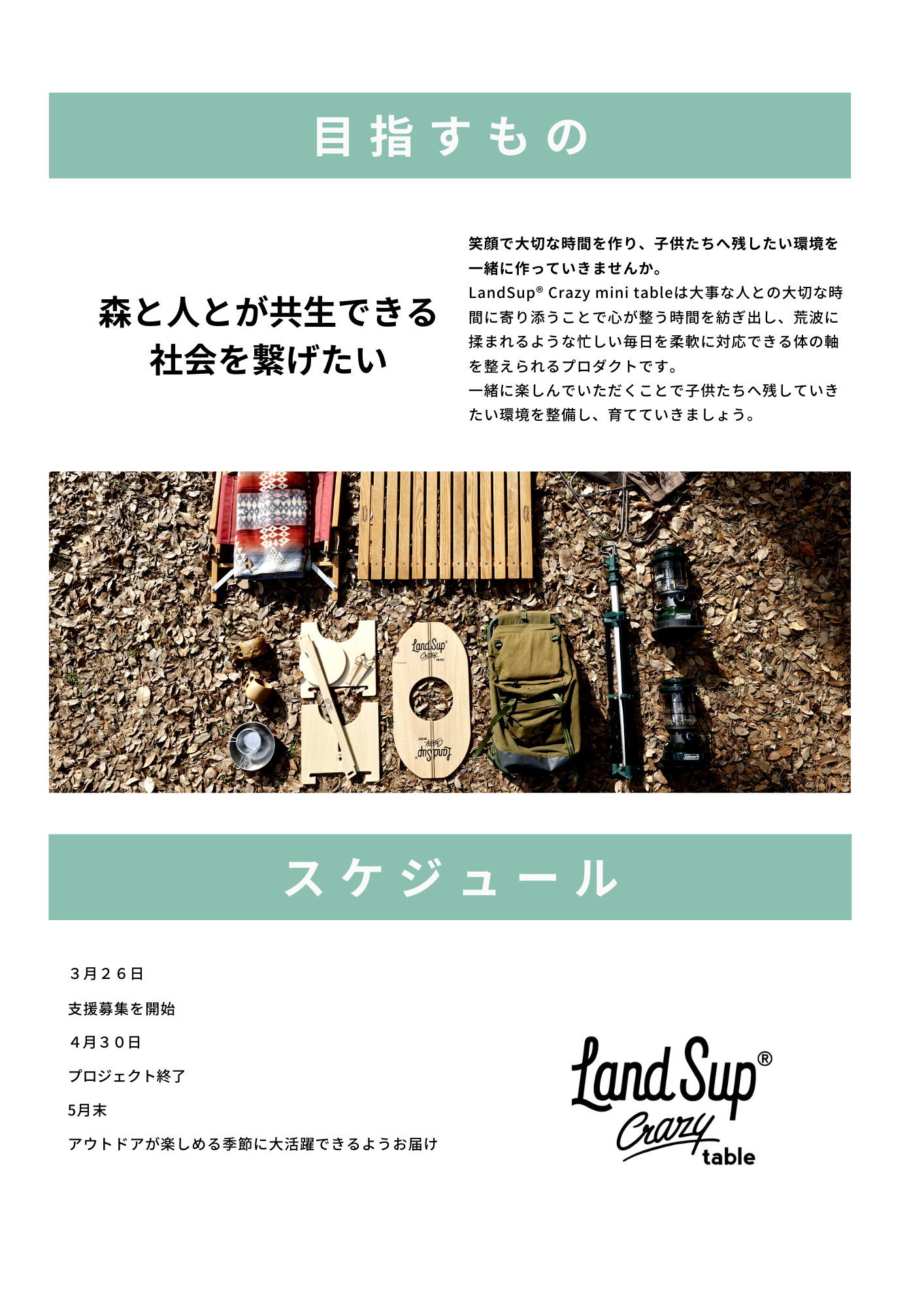 単なるプロダクトではなく、環境保全や将来を担う考え方のきっかけになることを願い、子供達の笑顔のため、LandSup® Crazy mini tableを作り出しています。