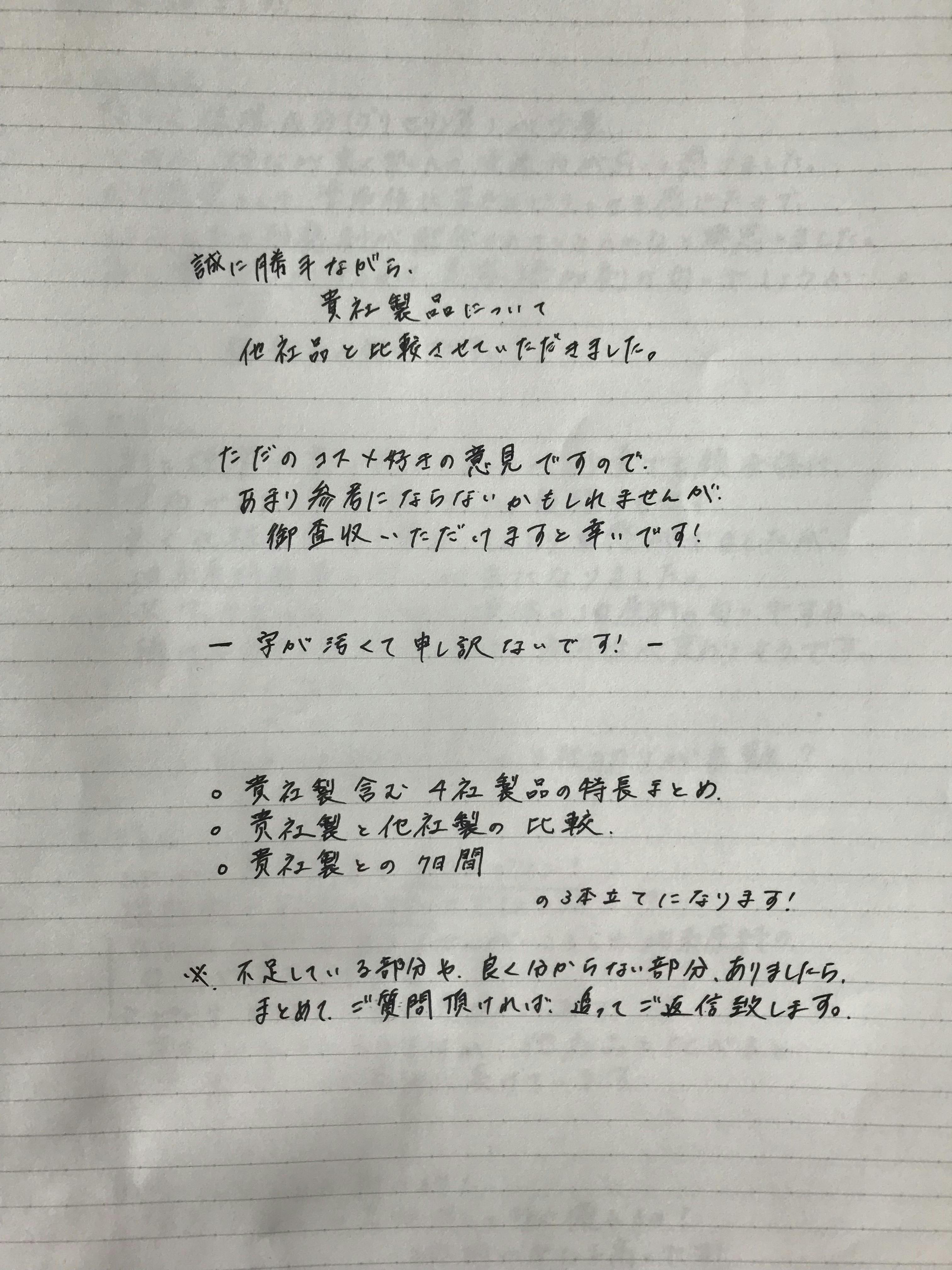 下記はその際にお客様より頂いたお手紙になります。(関東在住 20代女性)
