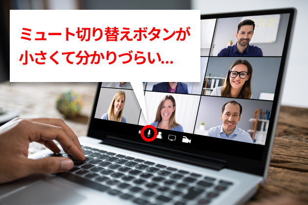 また、画面上でミュートを切り替える際、ボタンが小さい為、マウスをくるくる移動させながら場所を探してクリックする動作は意外と集中力を削いでいます。
