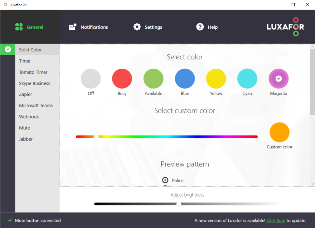 ミュート切り替え以外にも、「メール受信通知機能(指定した件名のメールを受信すると、LEDがお知らせ)」、「タイマー機能(設定した時刻や時間毎にLEDでお知らせ)」「外部連携機能(zapier、Webhook)」「SkypeBusiness連携(ステータスに合わせてLEDカラーを切替、周囲に状況を伝えます)」