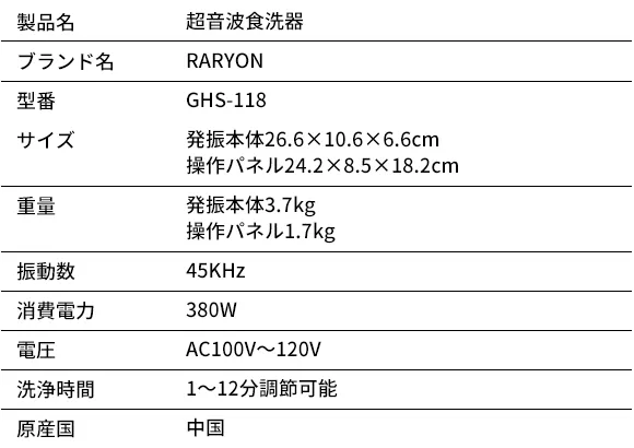 RARYONは、380W強力な超音波洗浄技術を採用している斬新的な食器洗い器です。シンクや入れ物などに入れるだけで、水中で目に見えない超微細な泡を発生し、頑固な油汚れもしっかり落としてくれます。食器やキッチンツールはもちろん、果物、野菜、アクセサリーまで様々なものをこれ1台で全部洗えます。