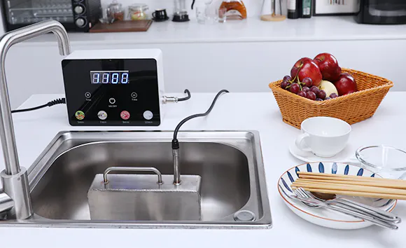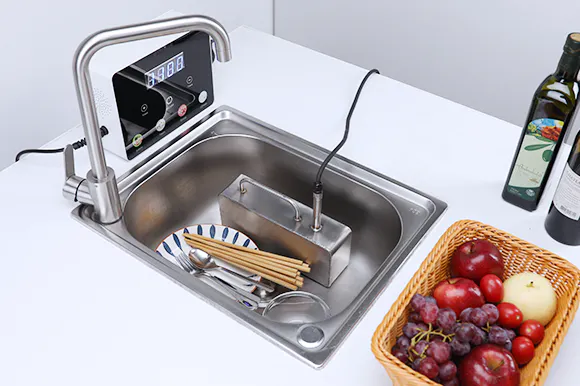 RARYONは、380Wのパワフルな超音波を発生させ、水中に数千もの超微細な気泡を作り出し、その高圧の泡が破裂する力を使って汚れを弾き落とします。軽い汚れならわずか数十秒で簡単に落とせますので、これからは直接手を触れずに食器洗いが可能に!