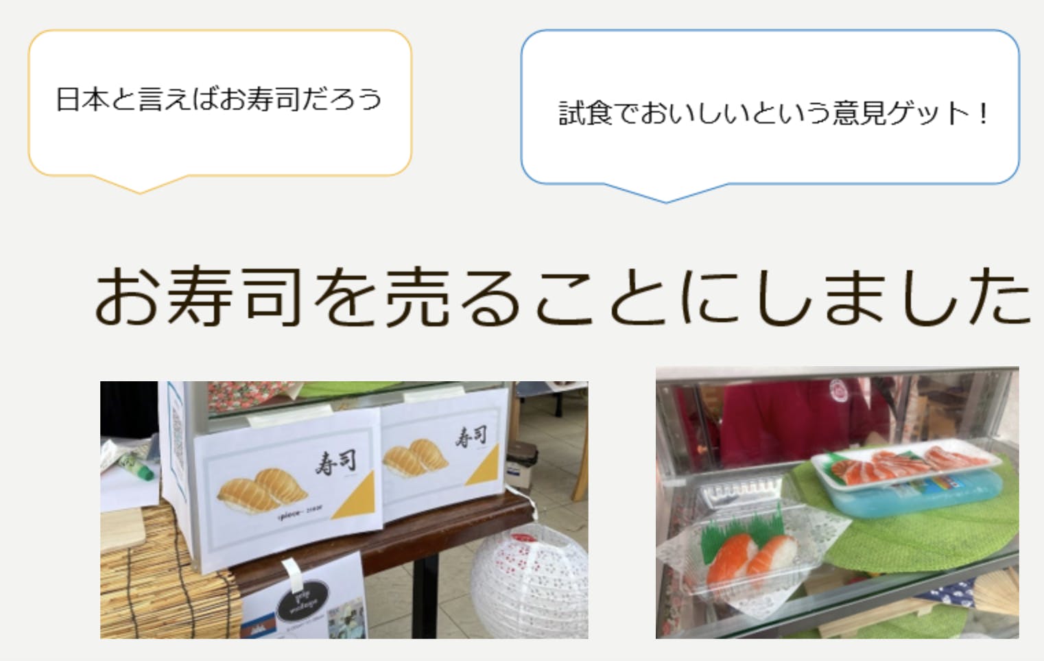 こうして5日間のリサーチの結果、サーモンの寿司を売ることにしました!