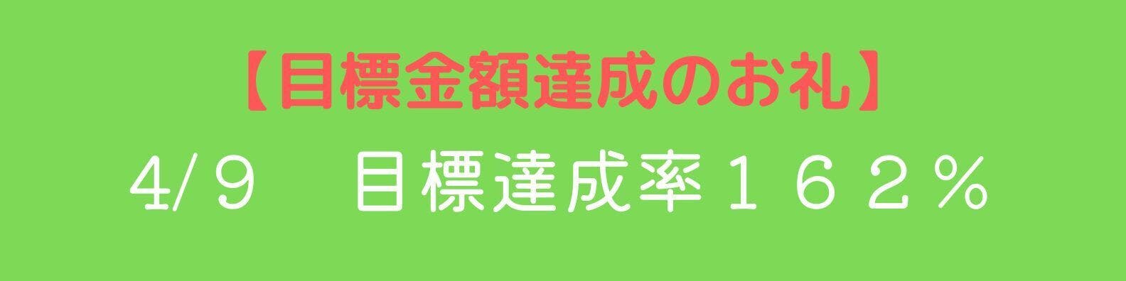 ありがとうございます!ネクストゴール達成しました。現在目標達成162%!