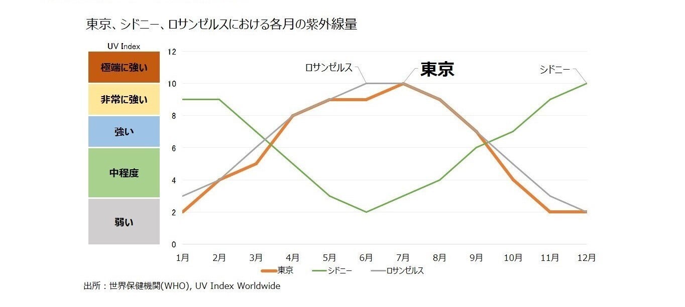そうなんです!実は、日本の紫外線量は対策が行われているオーストラリアやアメリカの都市と同程度なのです。*2