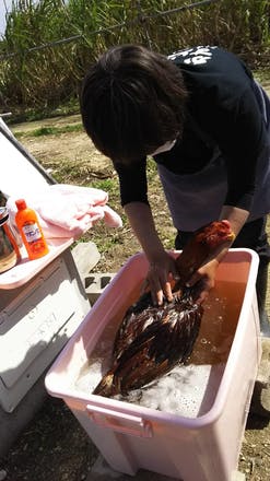...自宅の鶏にうつらない様に玄関前で服を脱ぎ そのまま風呂場へ直行生活を送っております。