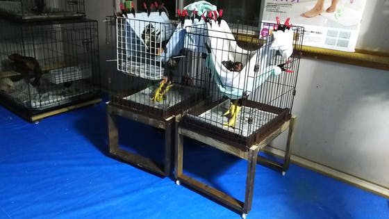 歩けない二羽はかかとを地面につくので穴が空いてしまいそこからバイ菌が入り更に悪化 …。