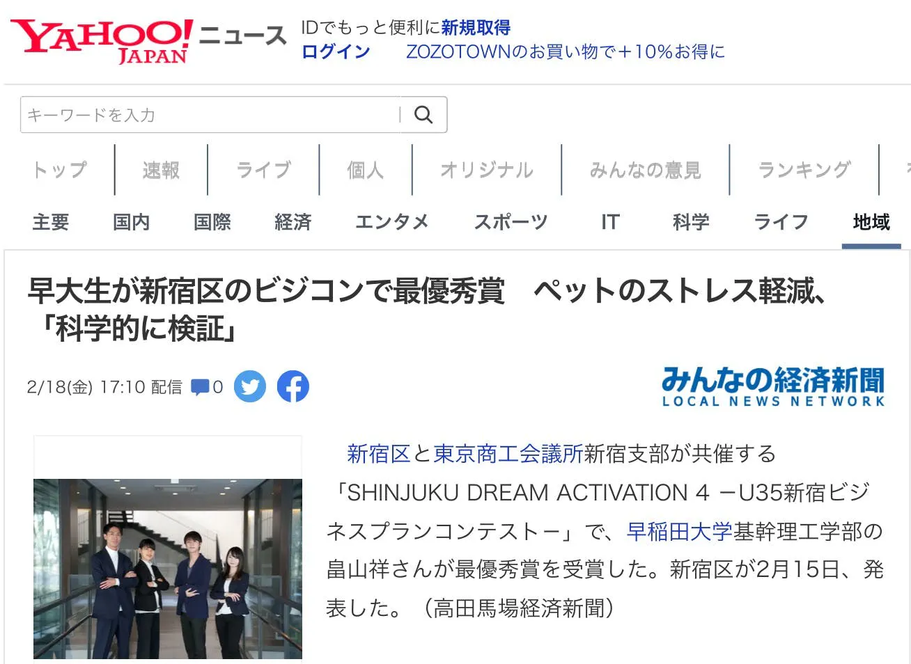 ヤフーニュースも掲載してくださいました!