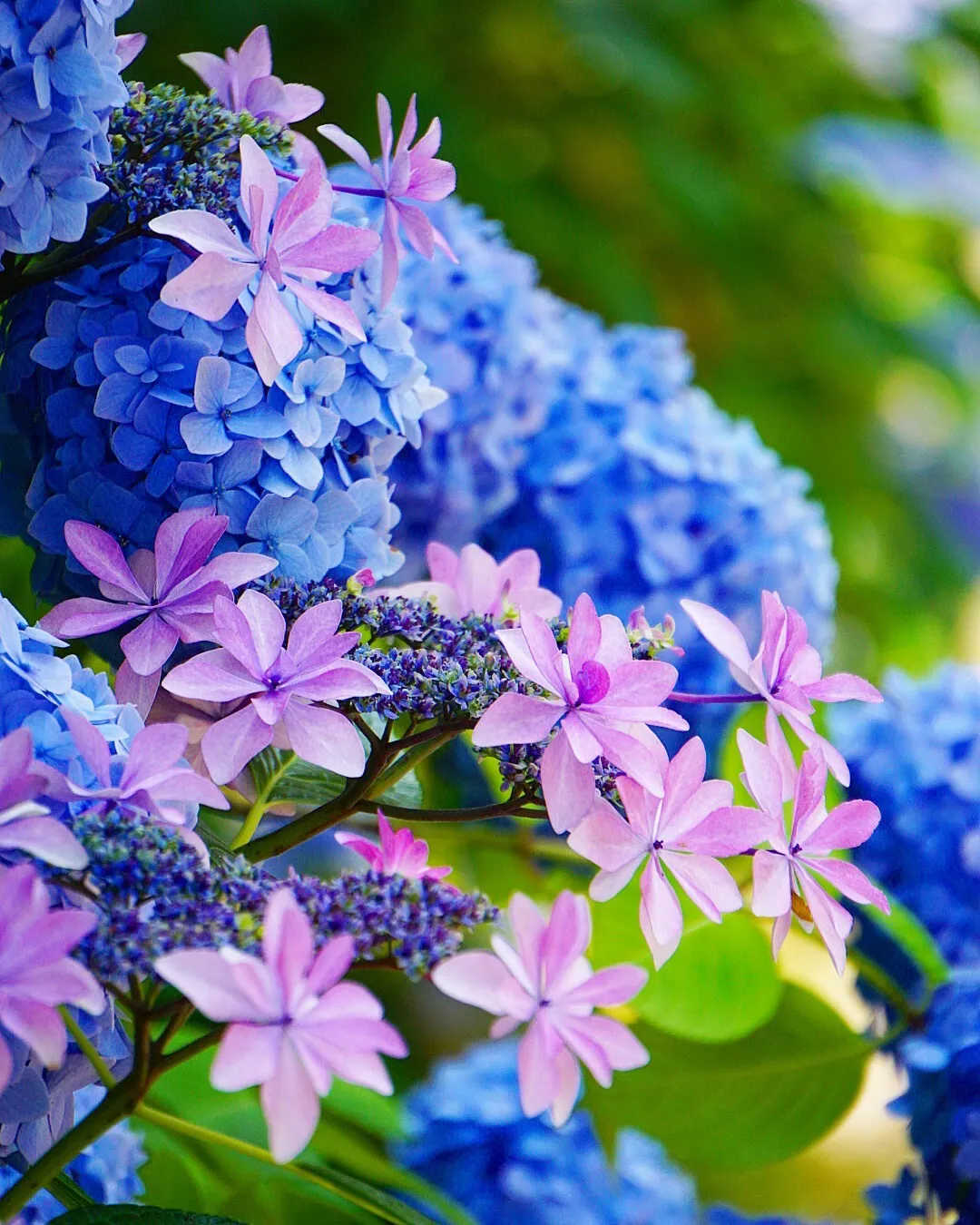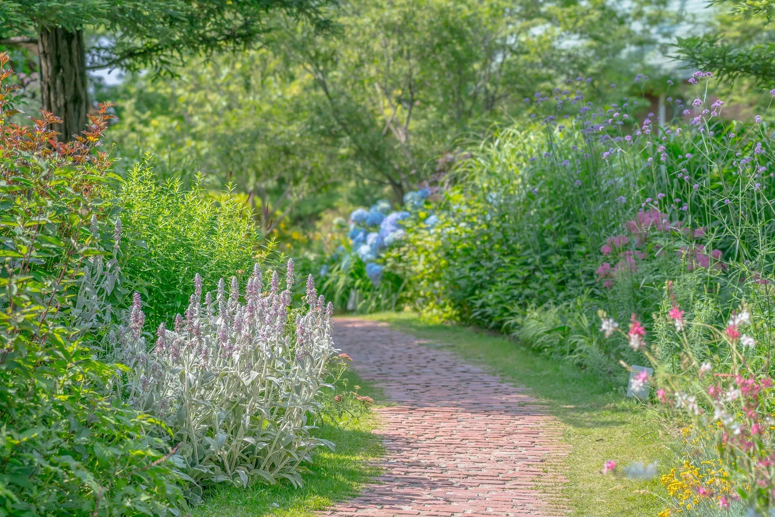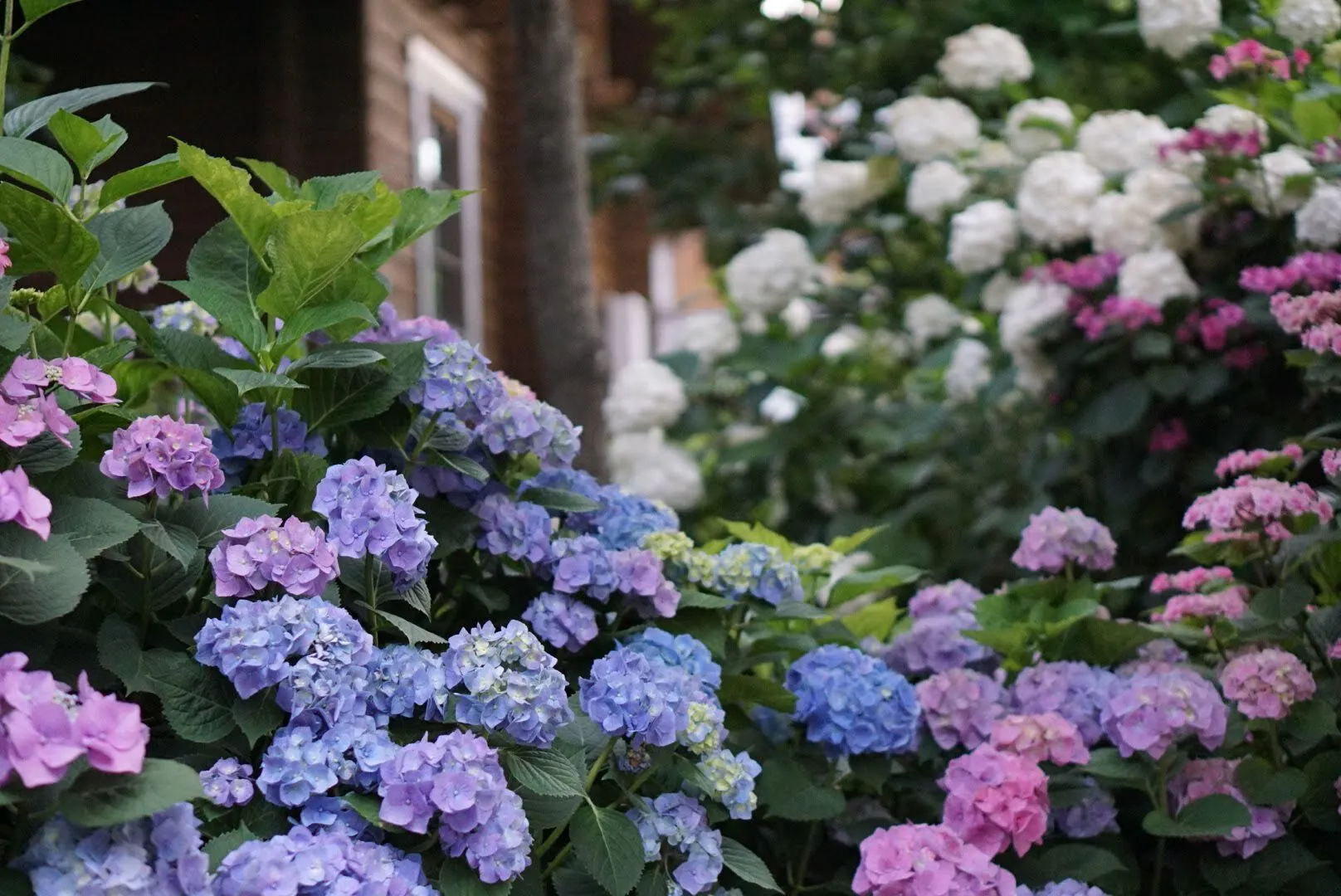 四季折々の草花が植えられ、初夏には100種類、2,000株もの色とりどりの紫陽花が咲き誇ります。