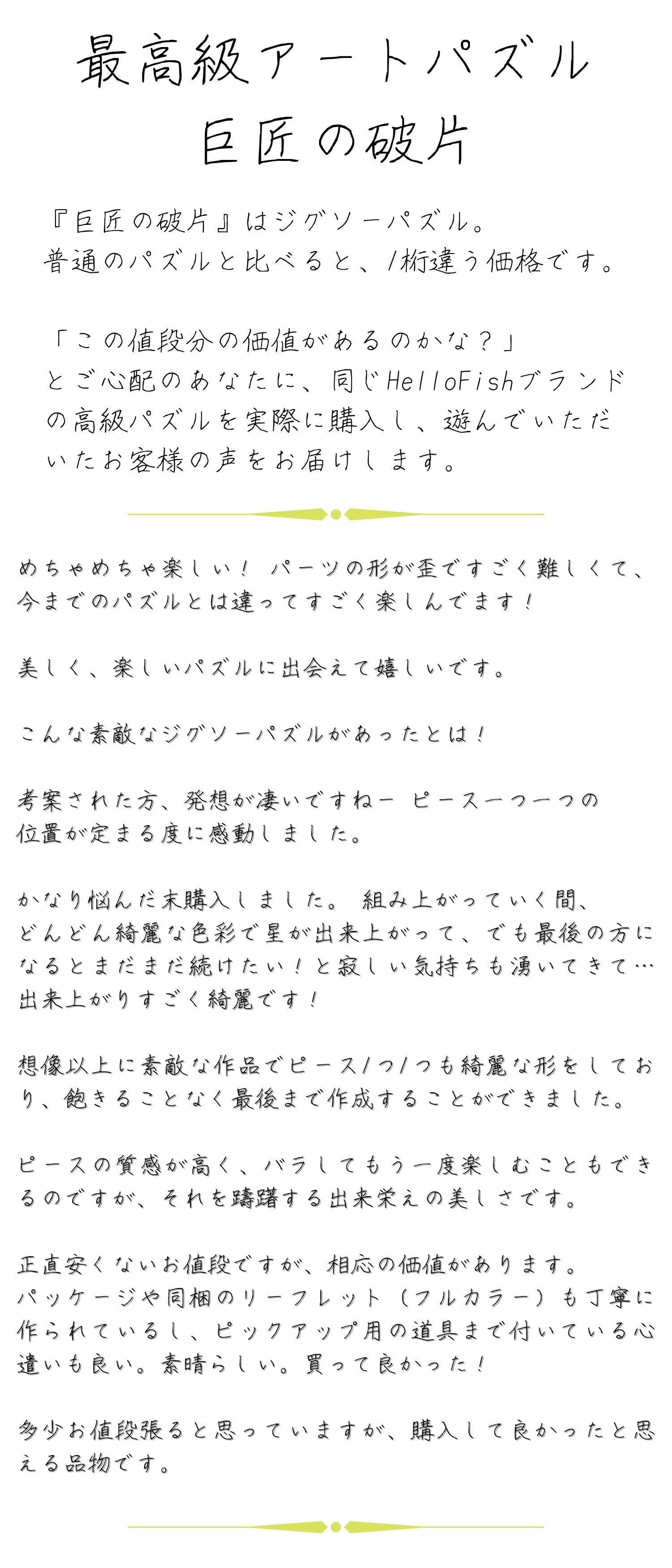 『巨匠の破片』はとてもユニークなピースで構成されています。