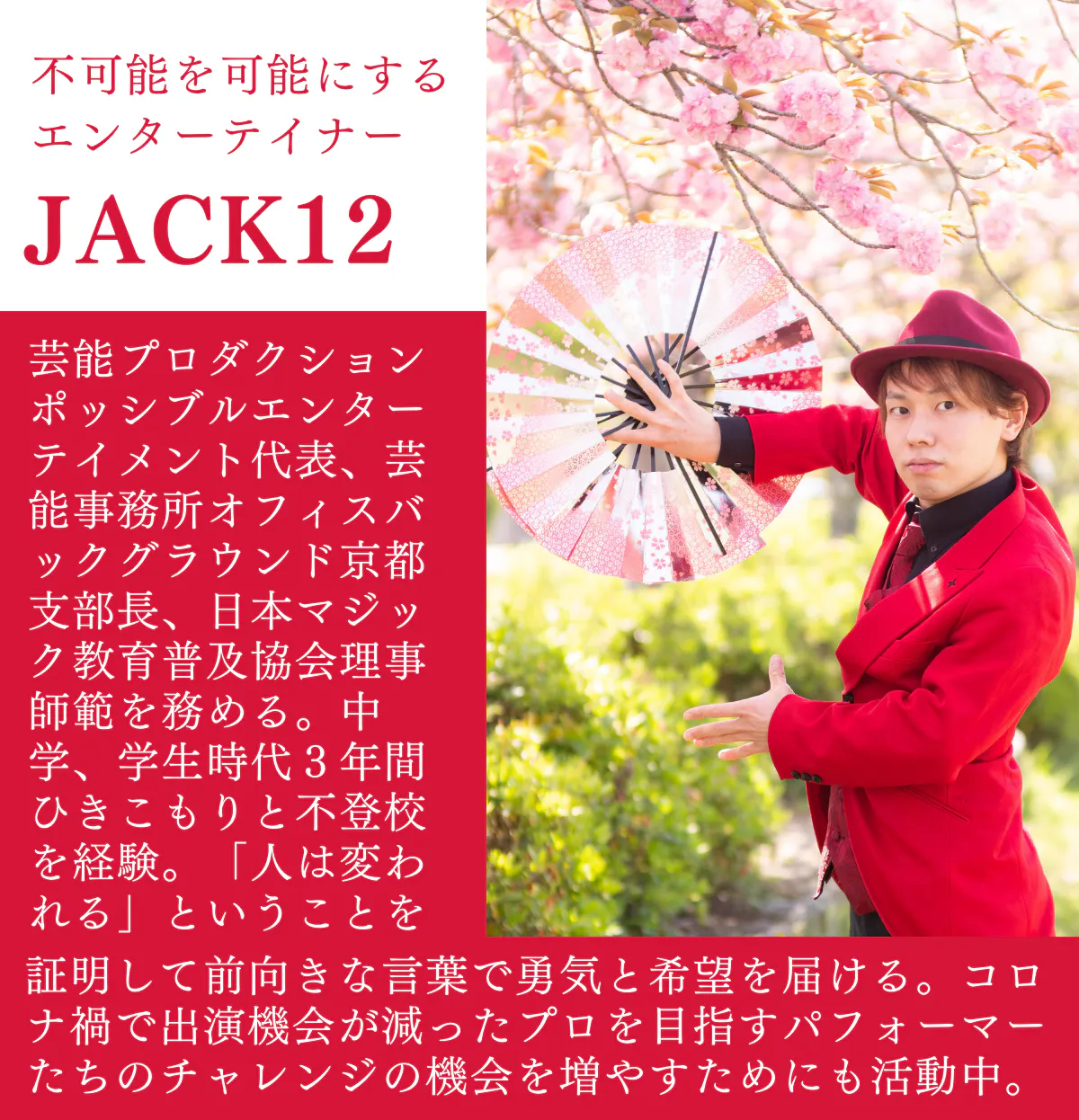 はじめまして!不可能を可能にするエンターテイナーのJACK12(ジャックトゥエルブ)と申します。数あるプロジェクトの中からご覧いただきありがとうございます。