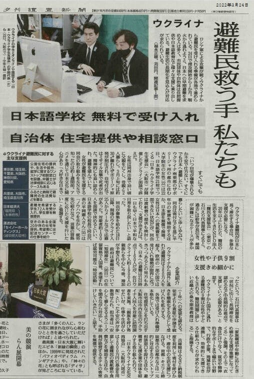 我が国はウクライナ避難民の受け入れを表明しています(3月2日岸田総理会見)。さらに、避難民への就労を可能とするなどの方針を打ち出しています。しかし、日本へ逃れた避難民の方々は、日本での生活環境の確保、そして日本語能力や職業能力が不可欠です。それなしには、受け入れは困難を極め、結局受け入れ側の疲弊や避難民の不満となることでしょう。
