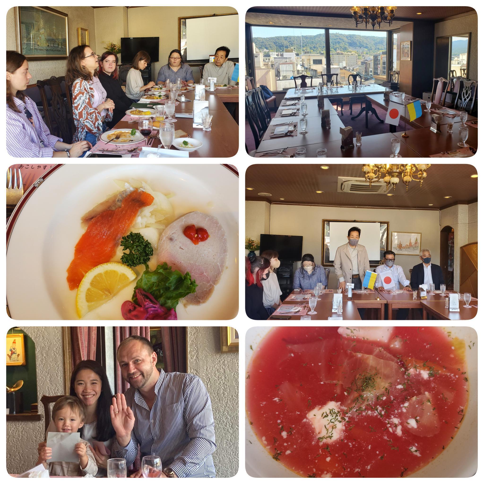 奨学金や寮を提供してくださっている株式会社インテ様が、ウクライナ避難民の方々との交流会に、ロシア料理とウクライナ料理を提供する 京都にあるレストラン「キエフ」にてご招待を受けました。