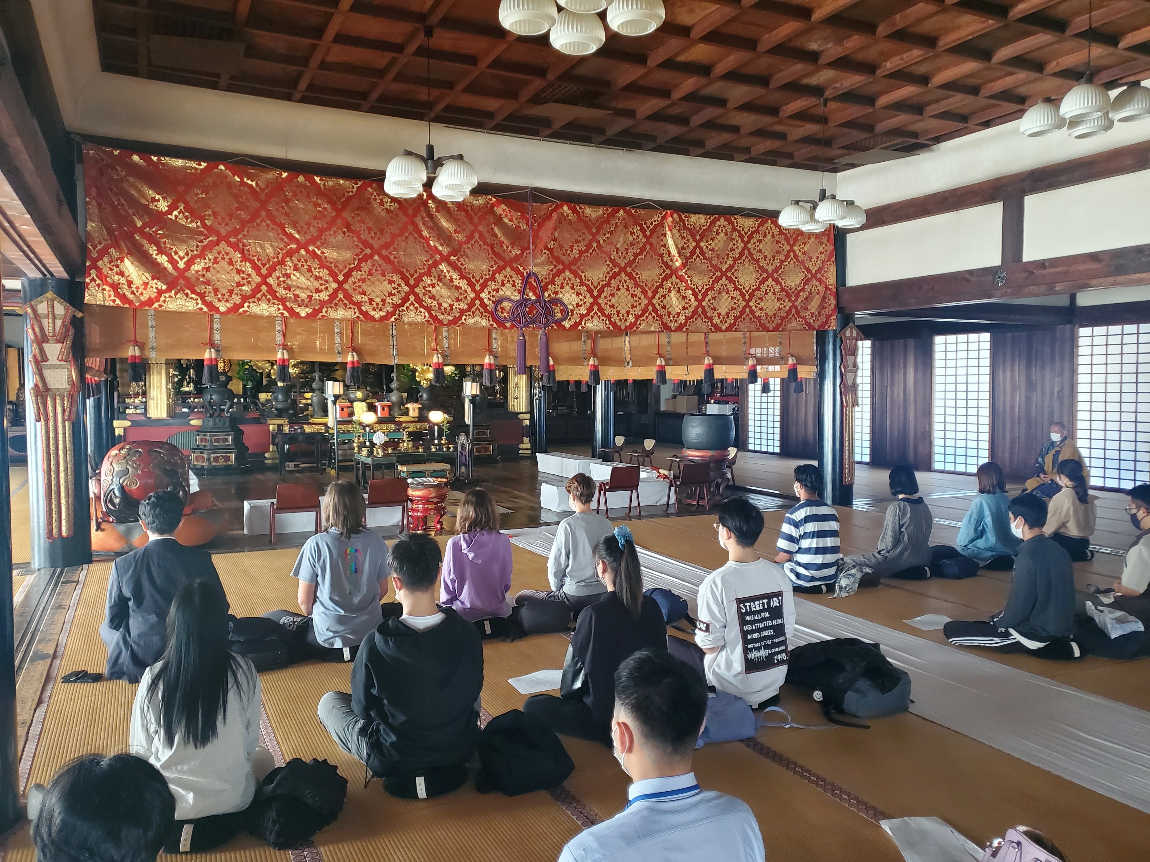 ユリヤ先生の通訳の元、四天王寺さんの「座禅会」に参加しました。