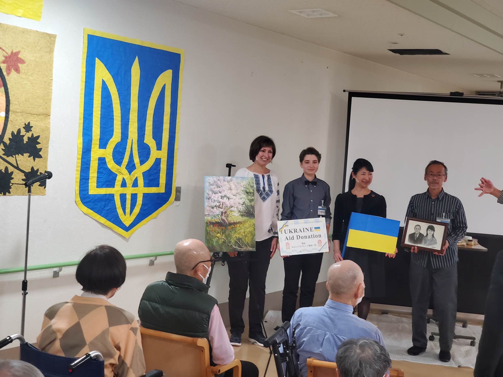 利用者さんたちが、切り絵のウクライナの国章や、旗を作ってくださり歓迎してくれました。
