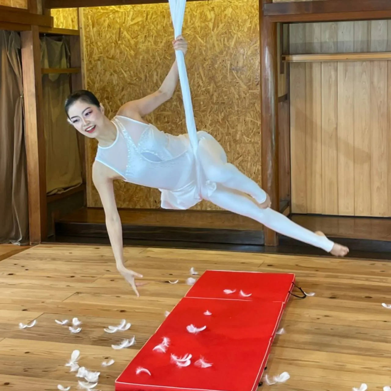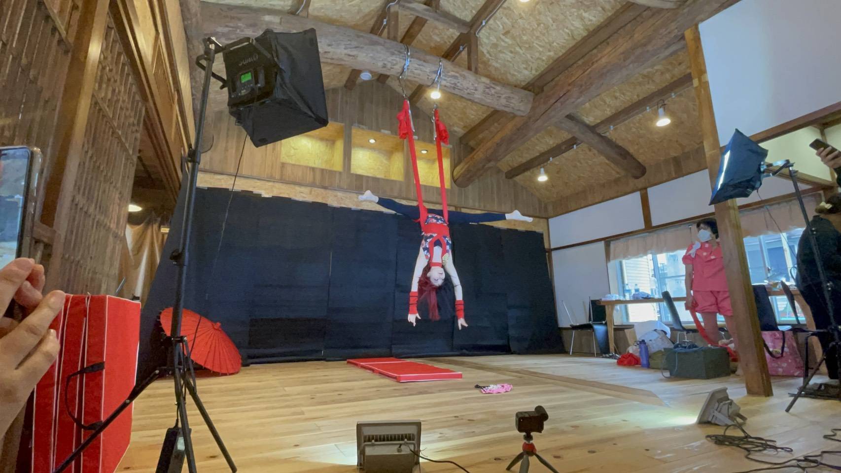 そして私たちが今力を入れているのは、このヨガの形に曲と振り付けを行い、宙に浮いて舞うという新しい形です。