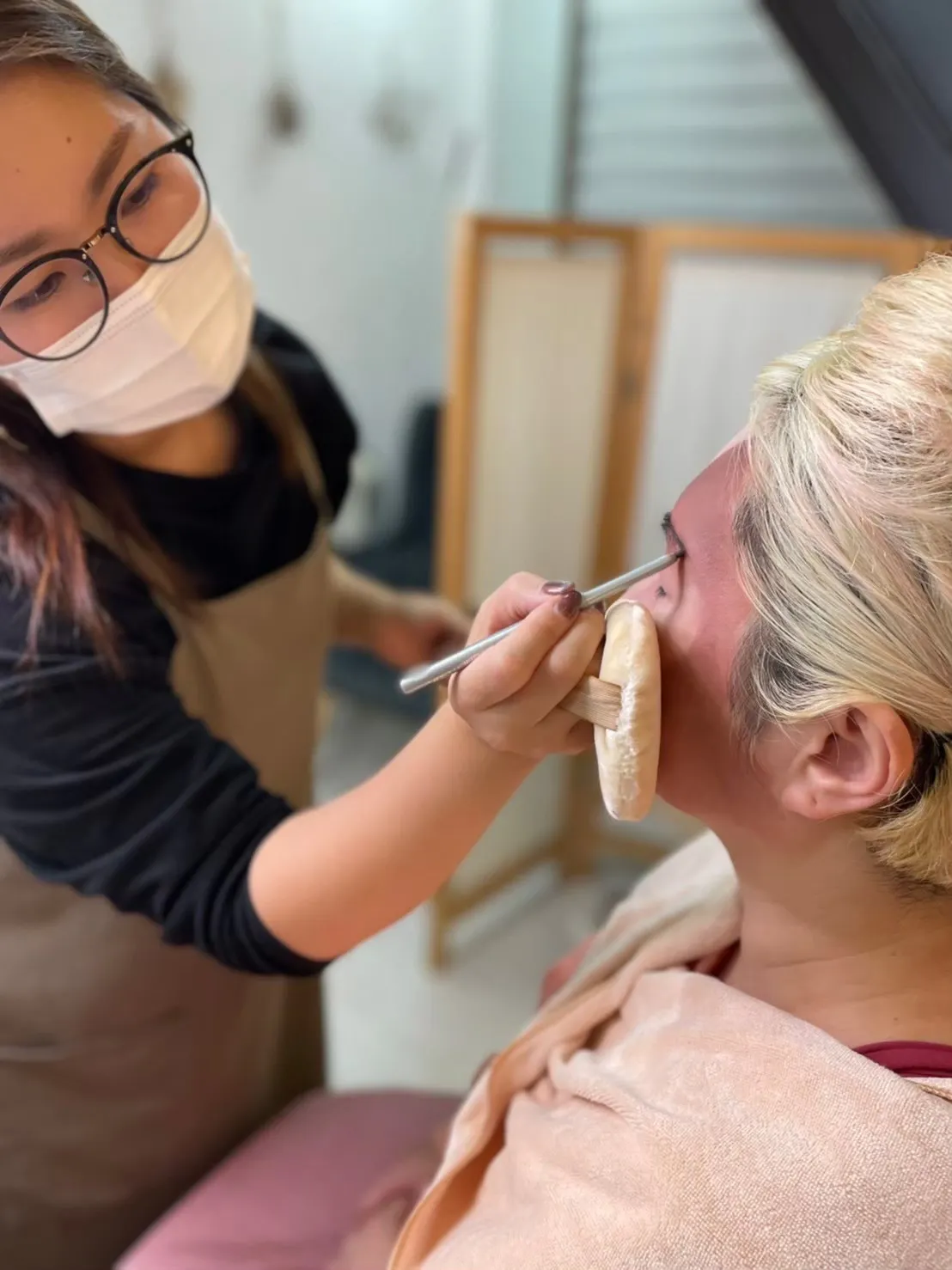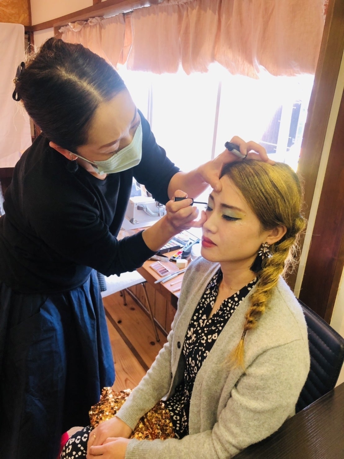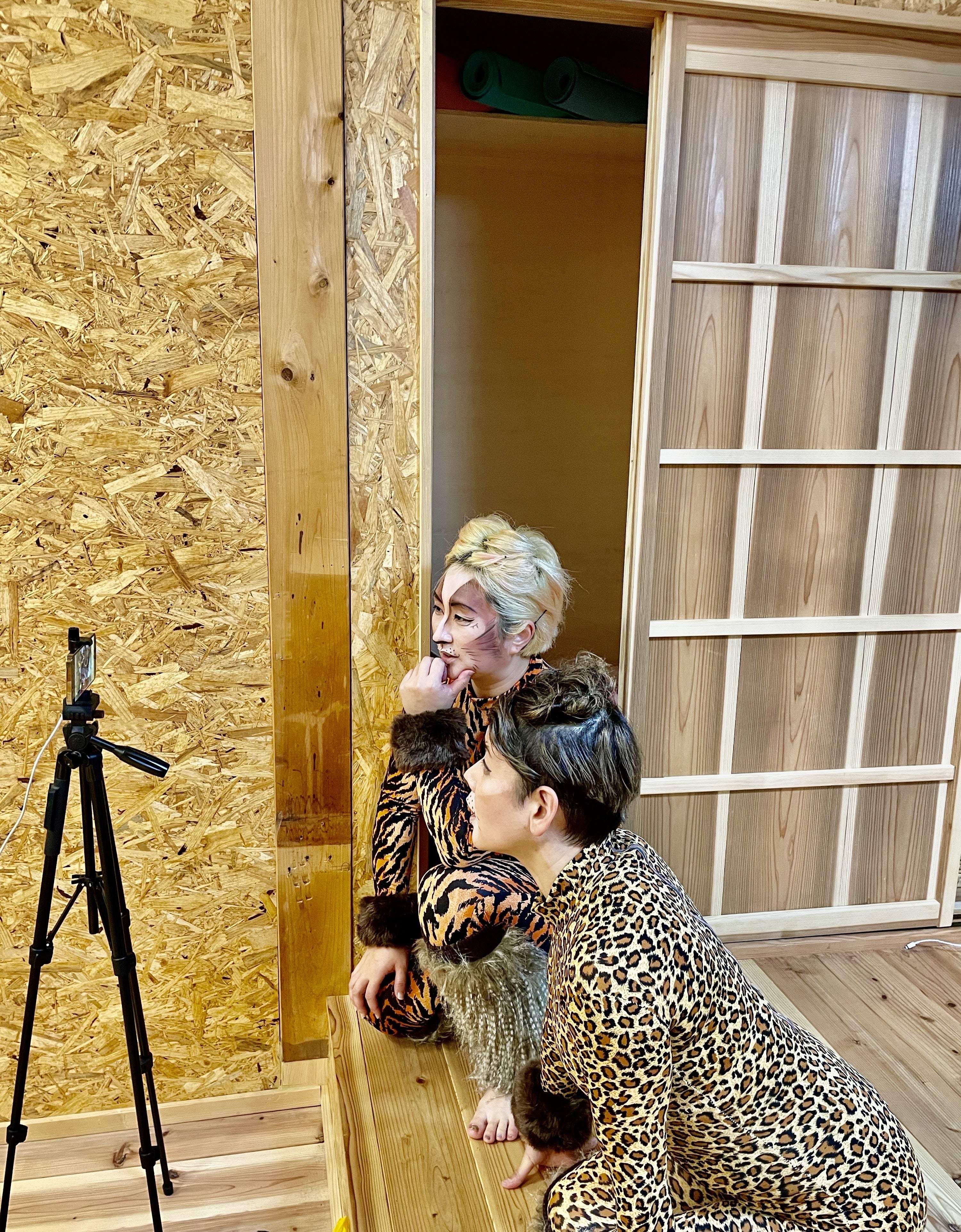 猫に扮するためにメイク中です。仕上がる頃には演技に向けてスイッチオン!!