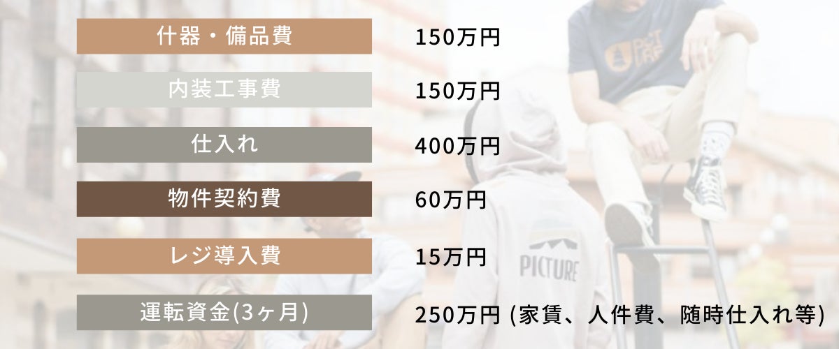 今回のクラウドファンディングではこれからかかる下記の内装工事費、仕入れ、運転資金等にあてるためご支援いただければと思います。