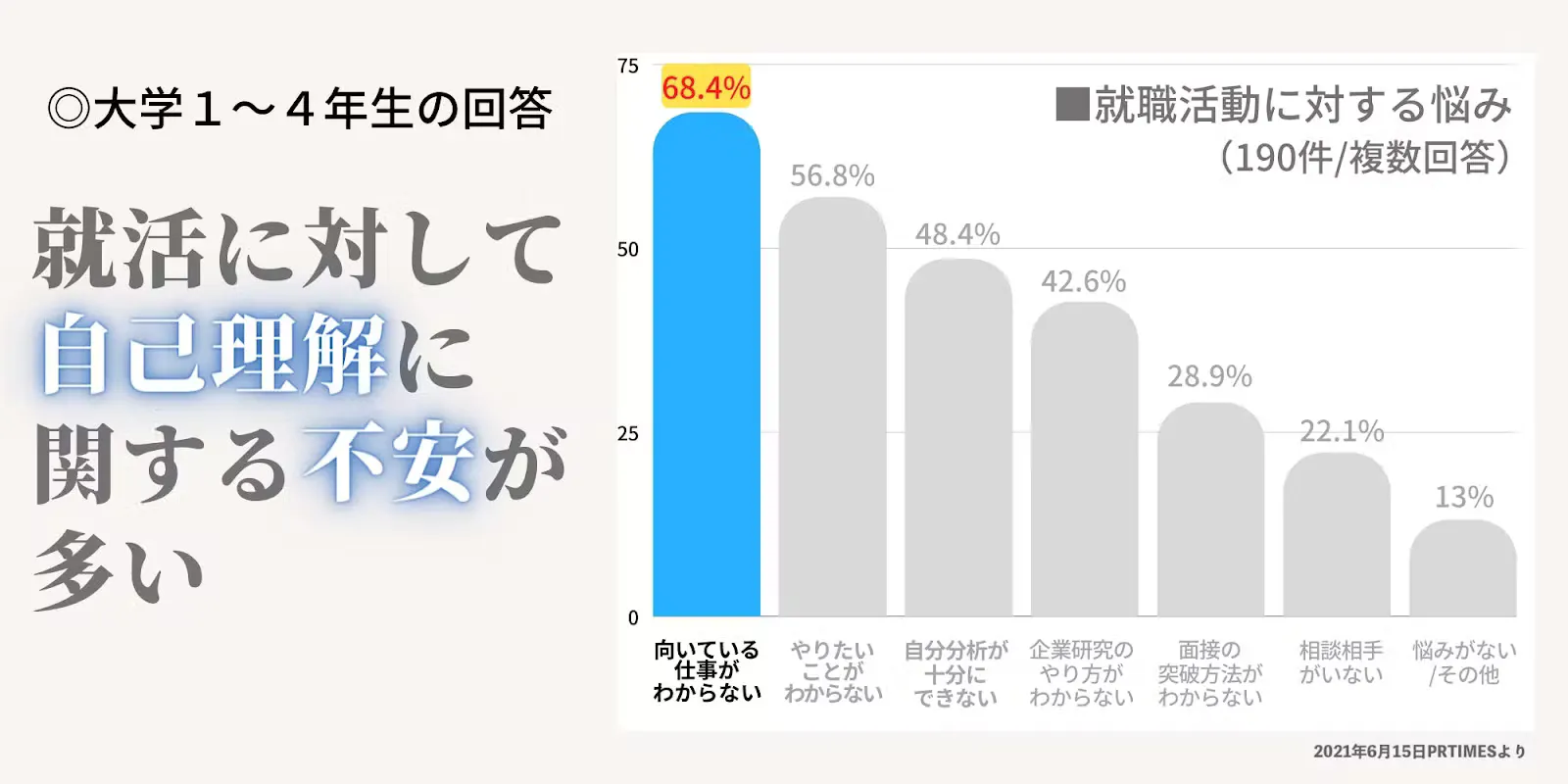 実際に、学生を対象にして行われた以下のアンケートからも今の若者が自分らしさを見失っていることがわかります。