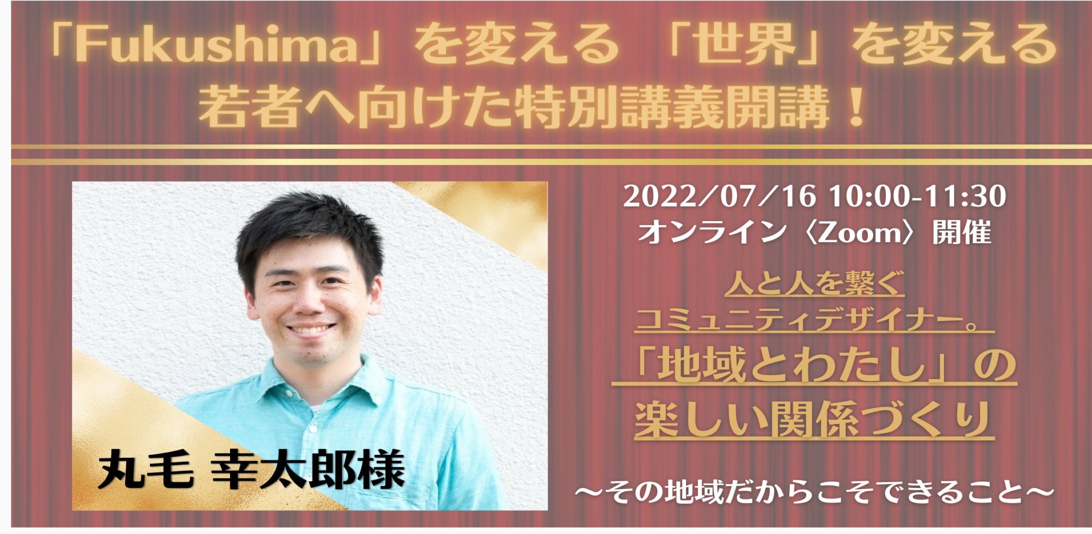 7/16(土)10:00~11:30【Fukushimafrogs寄付講座】 人と人を繋ぐコミュニティデザイナー丸毛幸太郎氏-登壇!!