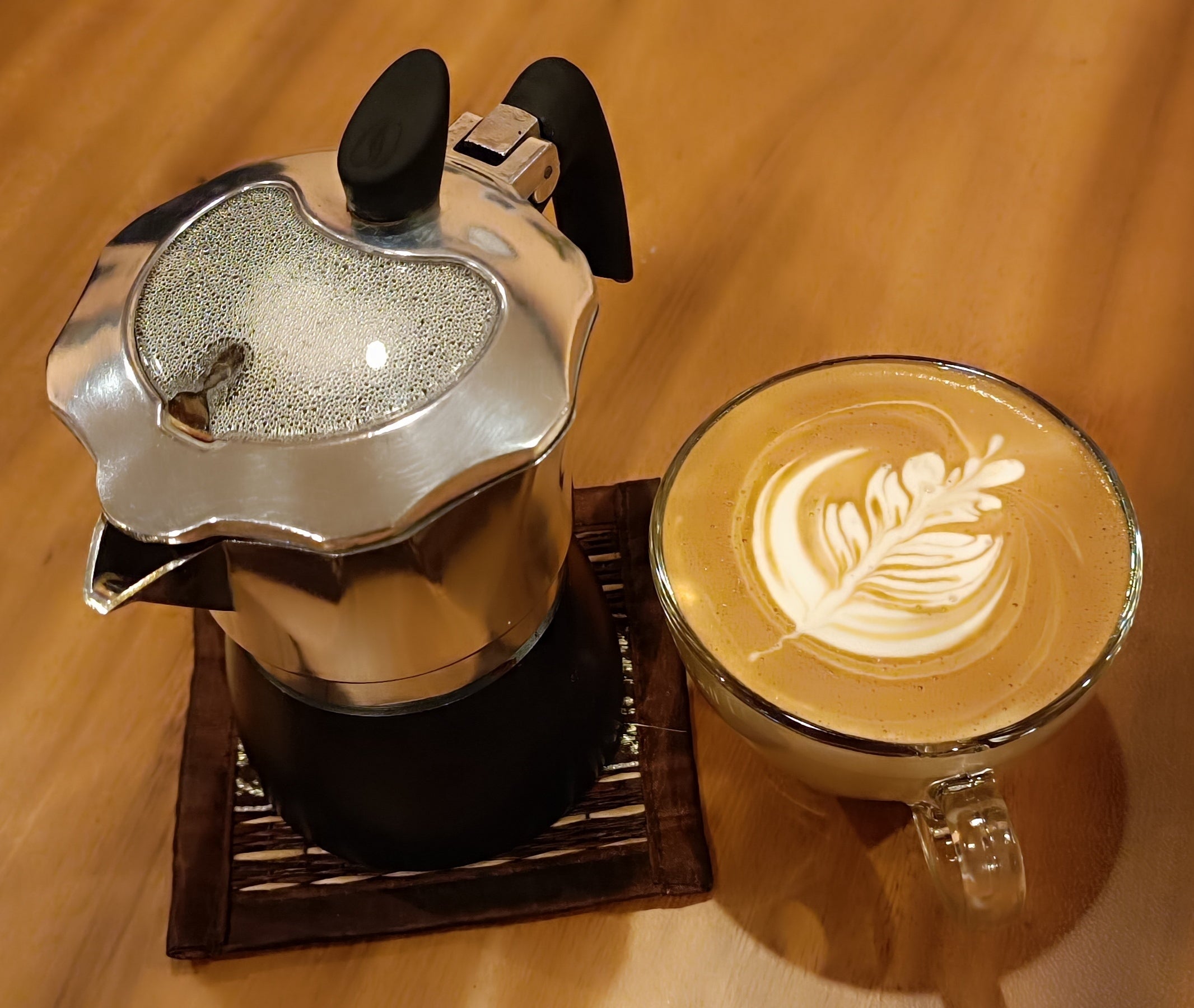 ※画像はクレミウで淹れたエスプレッソにミルクフォーマーでフォームミルクを作り、ピッチャーでラテアートを描いてみました。まだまだ下手ではあるのですが、どうぞ、お好きな方はチャレンジしてみてください。