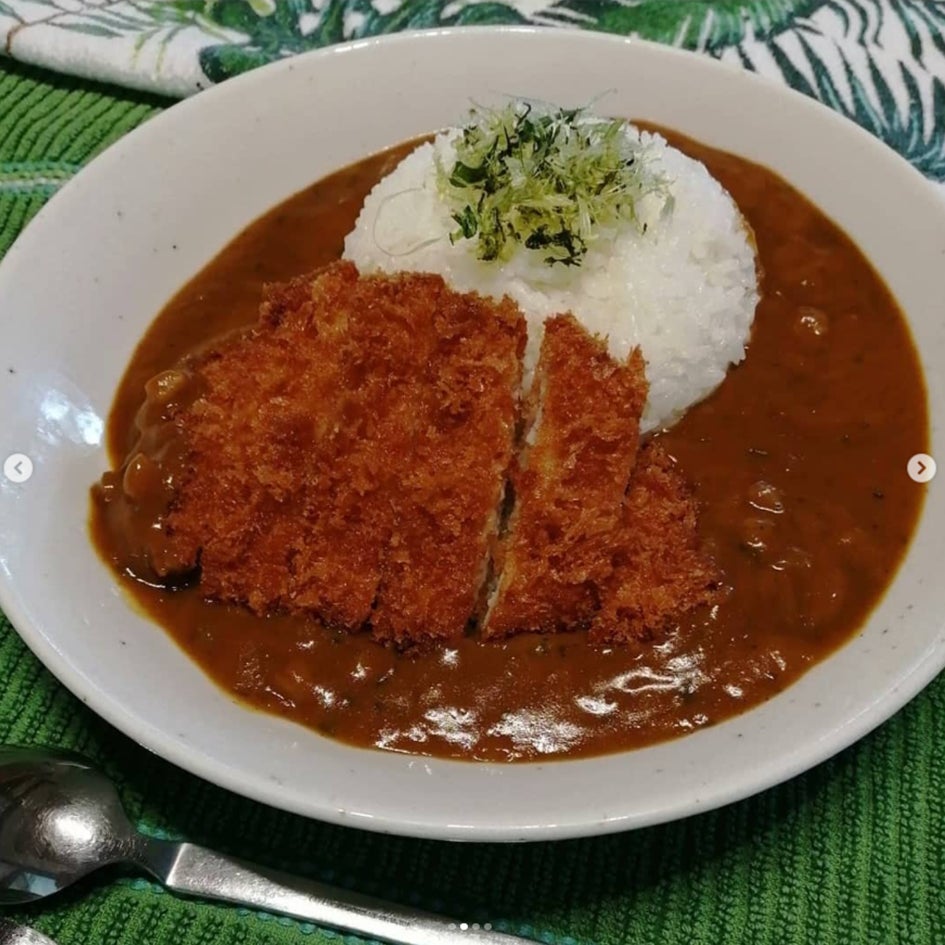 カツカレーの白米に明日葉ふわふわ削り節をトッピング