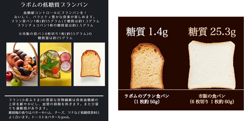 ラポムのブランパンは高い血糖値に悩んでいたシェフが自分の体を実験台に作り上げた低糖質でおいしいパンです。