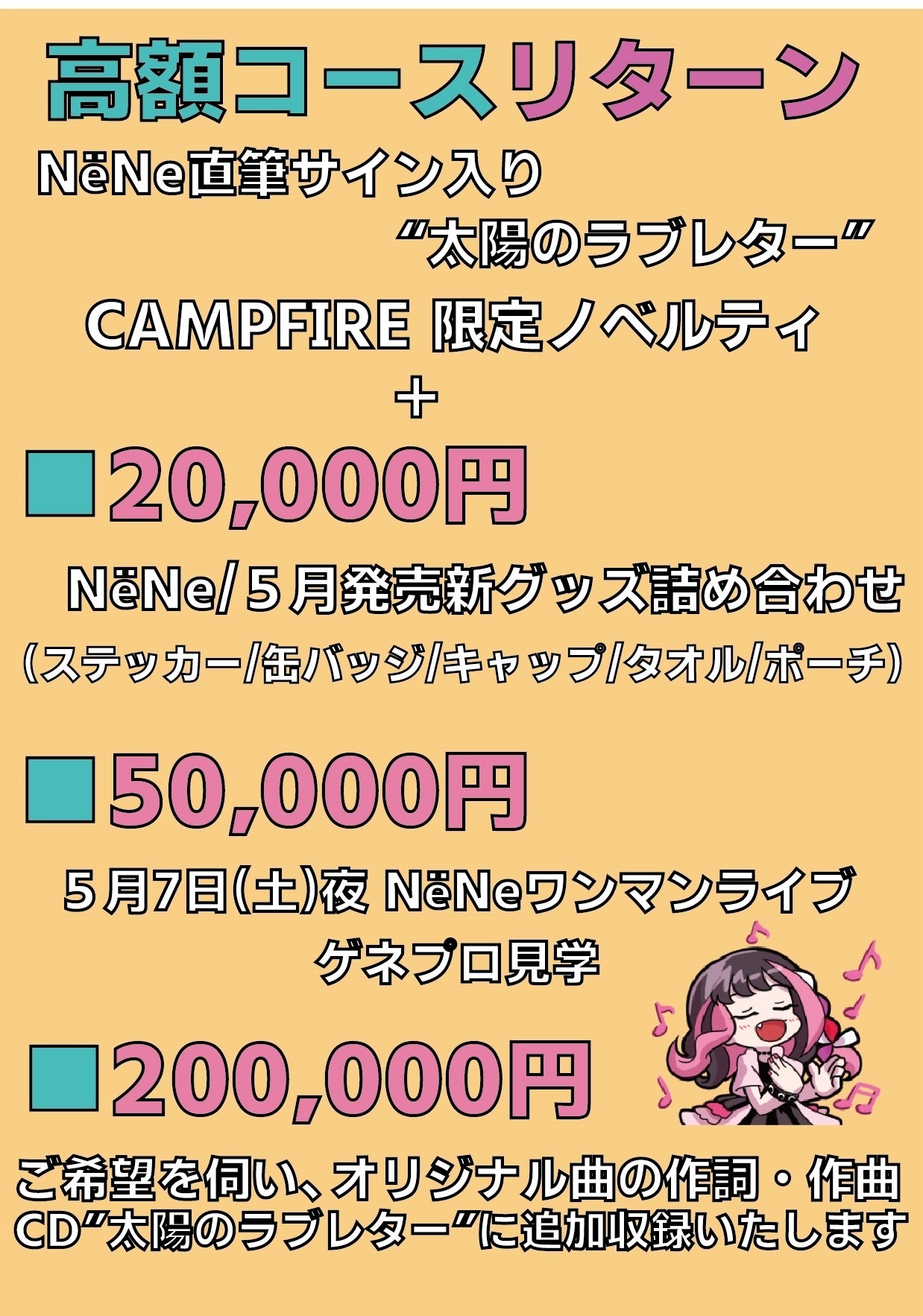 NёNeの最新アルバム「太陽のラブレター」の制作費用