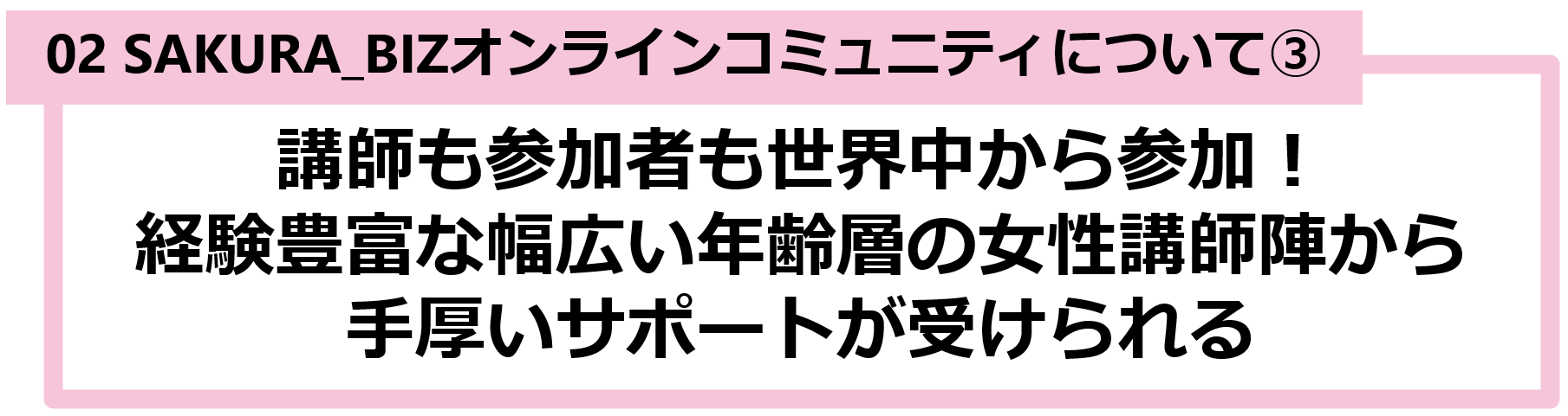 参加メンバーは様々な年齢層、バックグラウンド、ご経験を持っていて、愛情にあふれ、温かい雰囲気のコミュニティであり、助けを求めればいつでも誰かが助けてくれるので、安心して色んな事にチャレンジできます 。SAKURA_BIZで先に学んだママも講師になっているので、先輩として優しく導いてくれます。しかもグローバルなコミュニティで世界中とつながっている楽しみがあり、参加者同士の絆も強く、気軽に世界中のお友達が増えます。