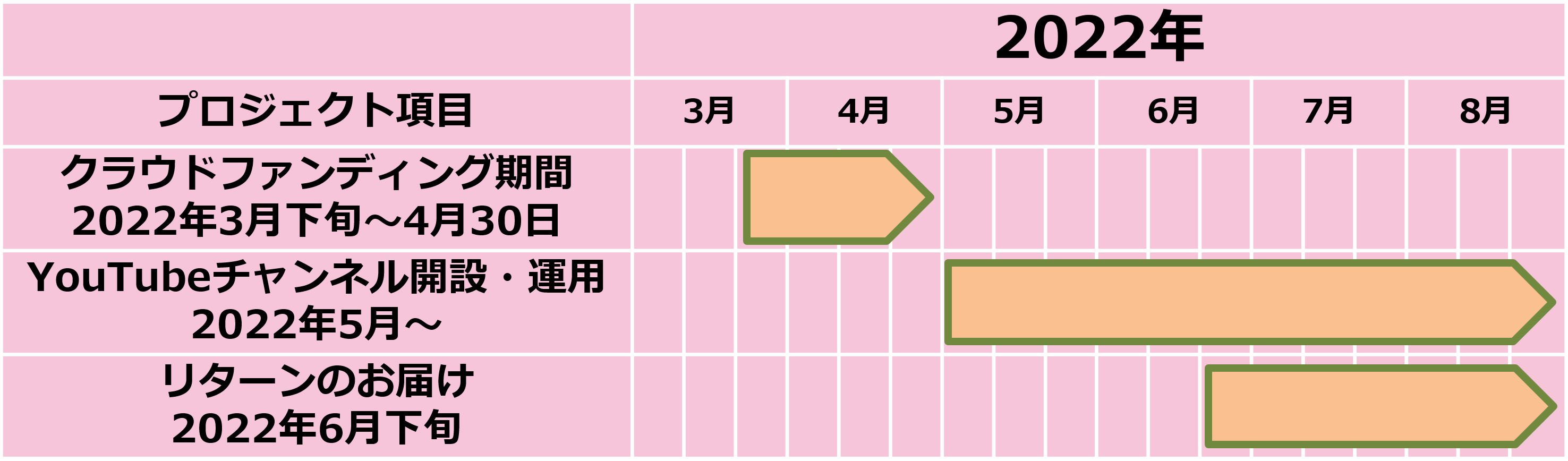 順調にいけば5月上旬にはSAKURA_BIZメンバーご協力のもと、YouTubeチャンネルの運用を開始する予定です。リターンは6月下旬より順次、ご案内、お届けを始めて参ります。