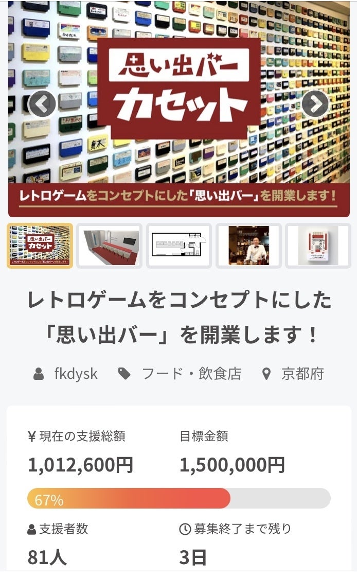 クラウドファンディング〆切まで残り3日、支援総額が100万円を超えました!ご支援者の皆さまのおかげですm(_ _)m