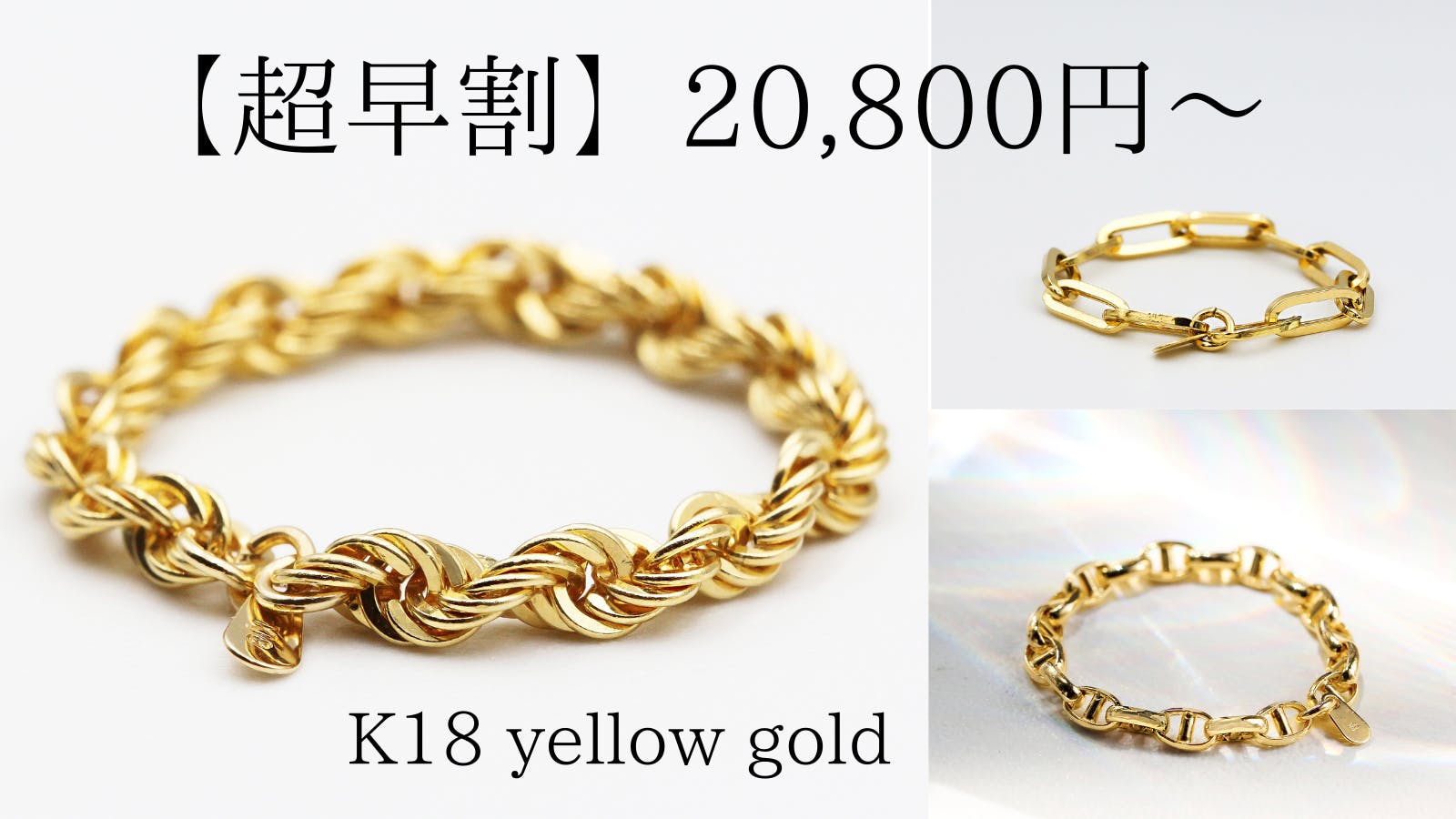 K18イエローゴールドのイニシャル刻印入りチェーンリングが、【超早割】だとなんと20,800円から購入可能です!