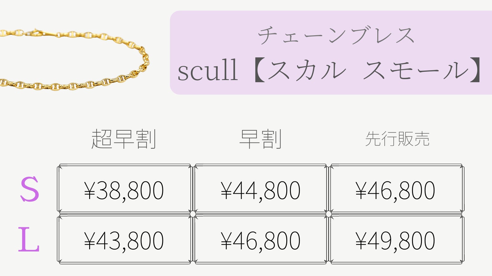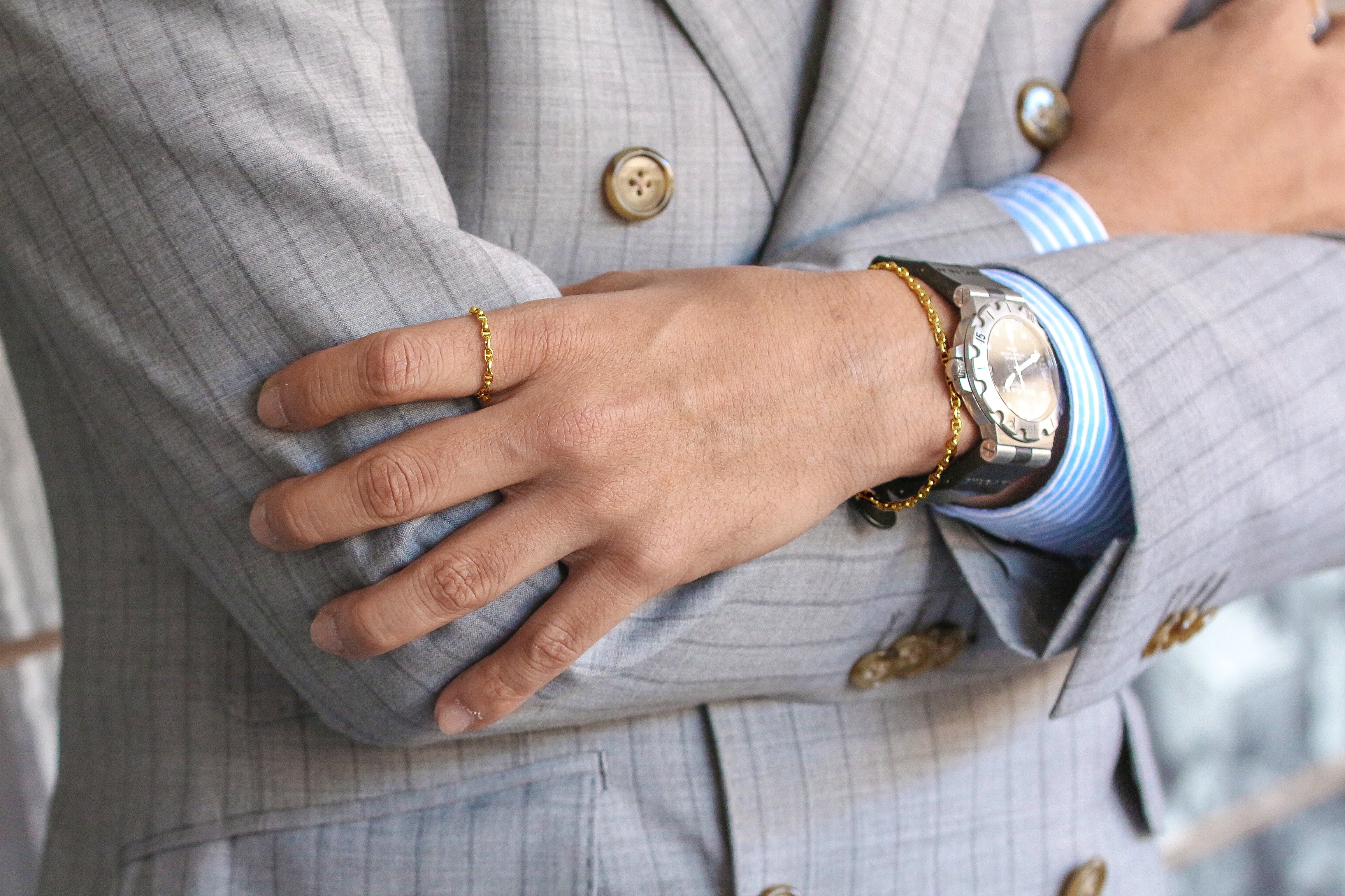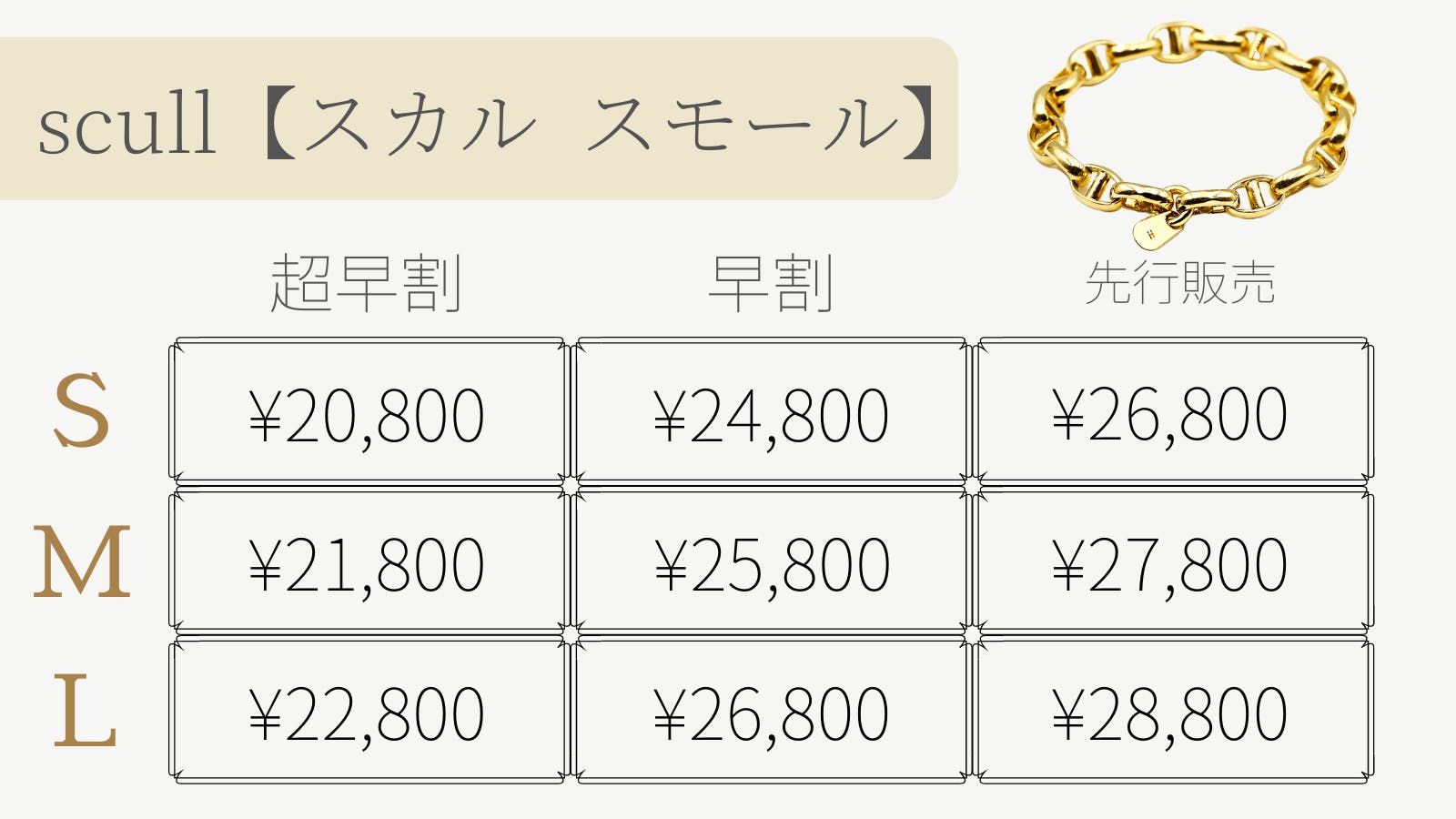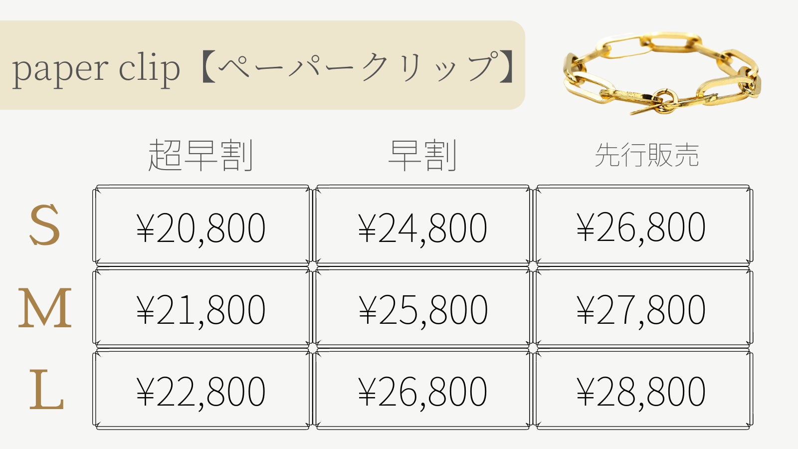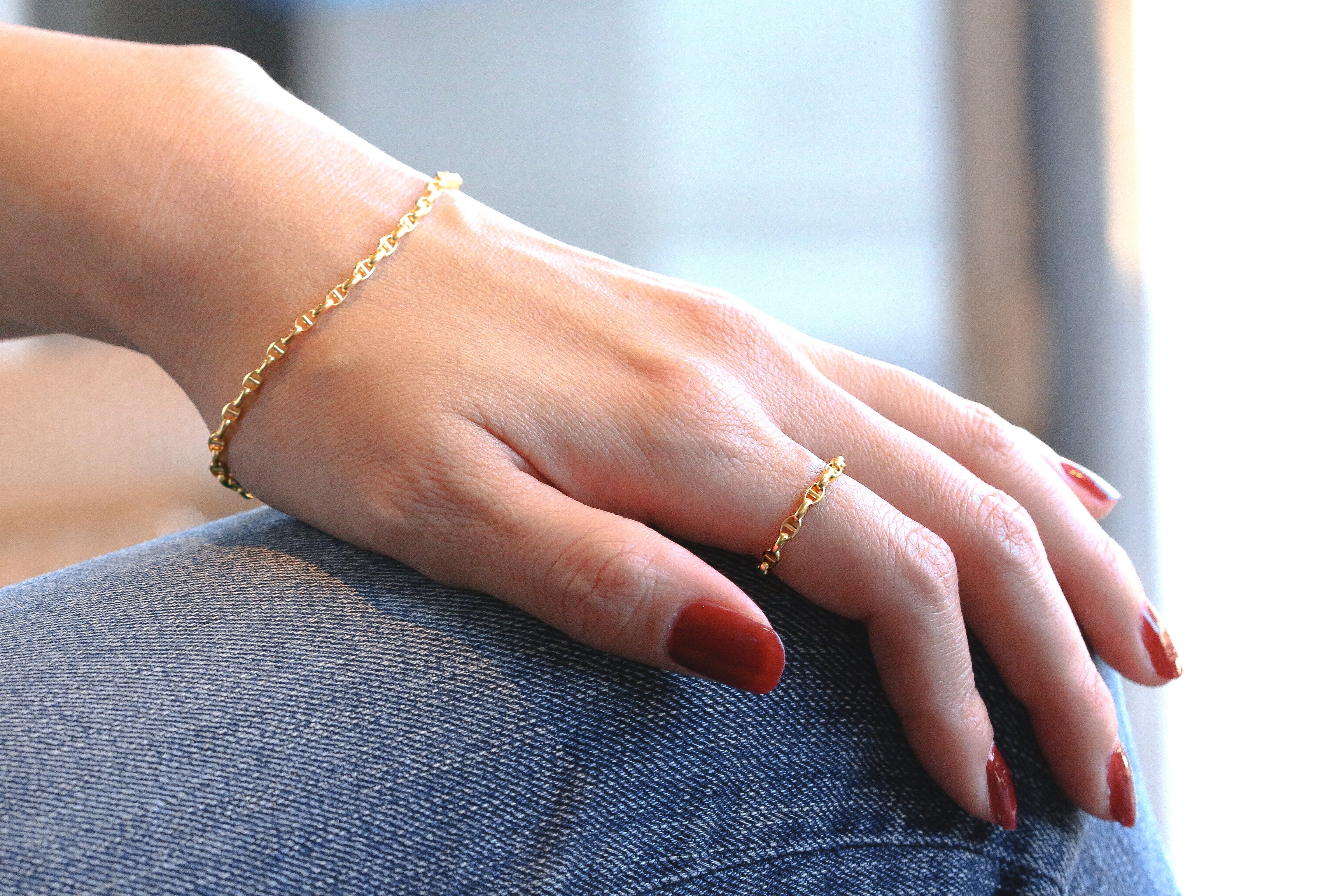 チェーンリングの先行販売に伴い、コーデ映えしやすいように、同じデザインのチェーンブレスレットもご用意しています。