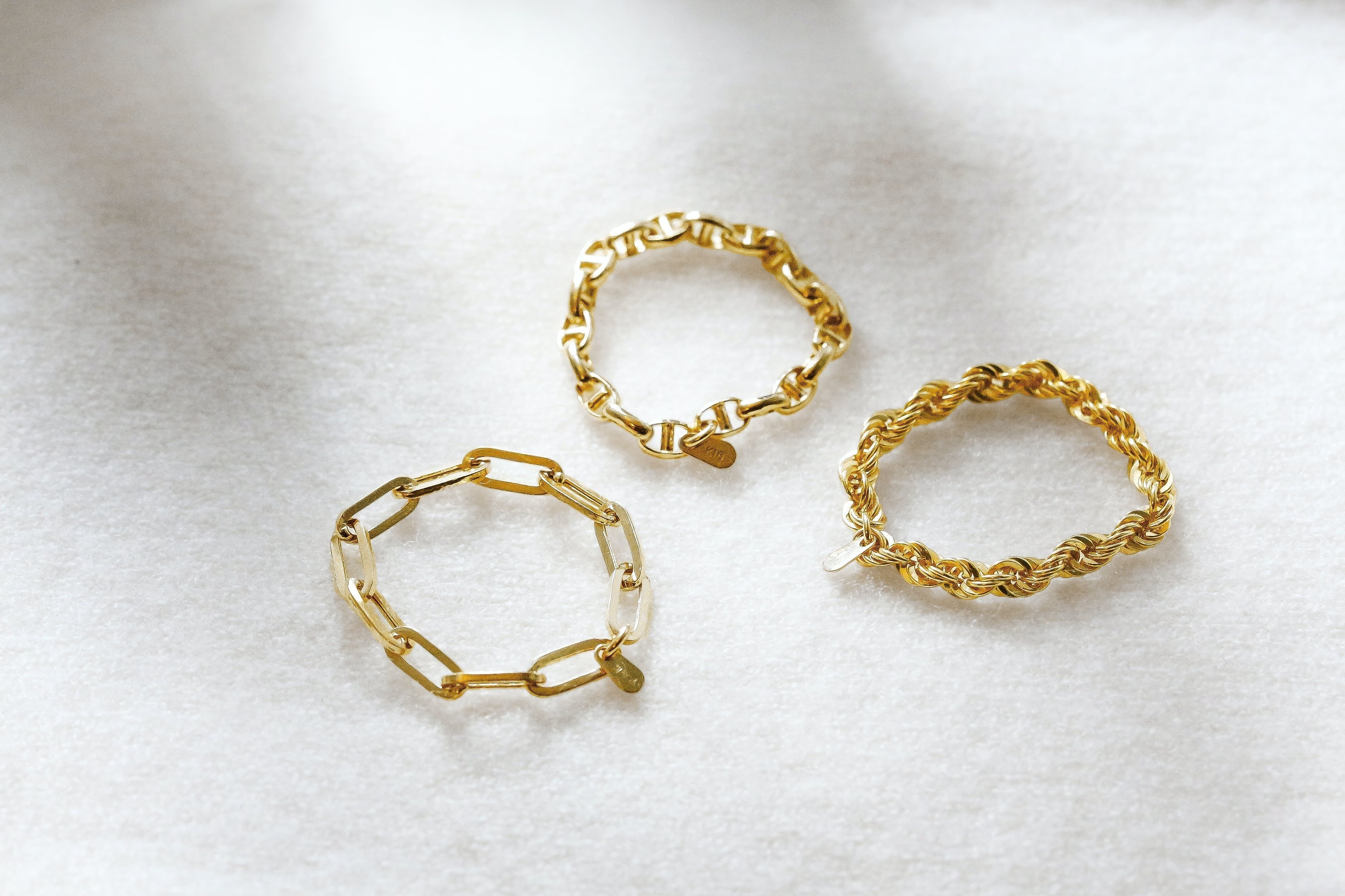 どのチェーンも指先に変化と表情を与えてくれます。