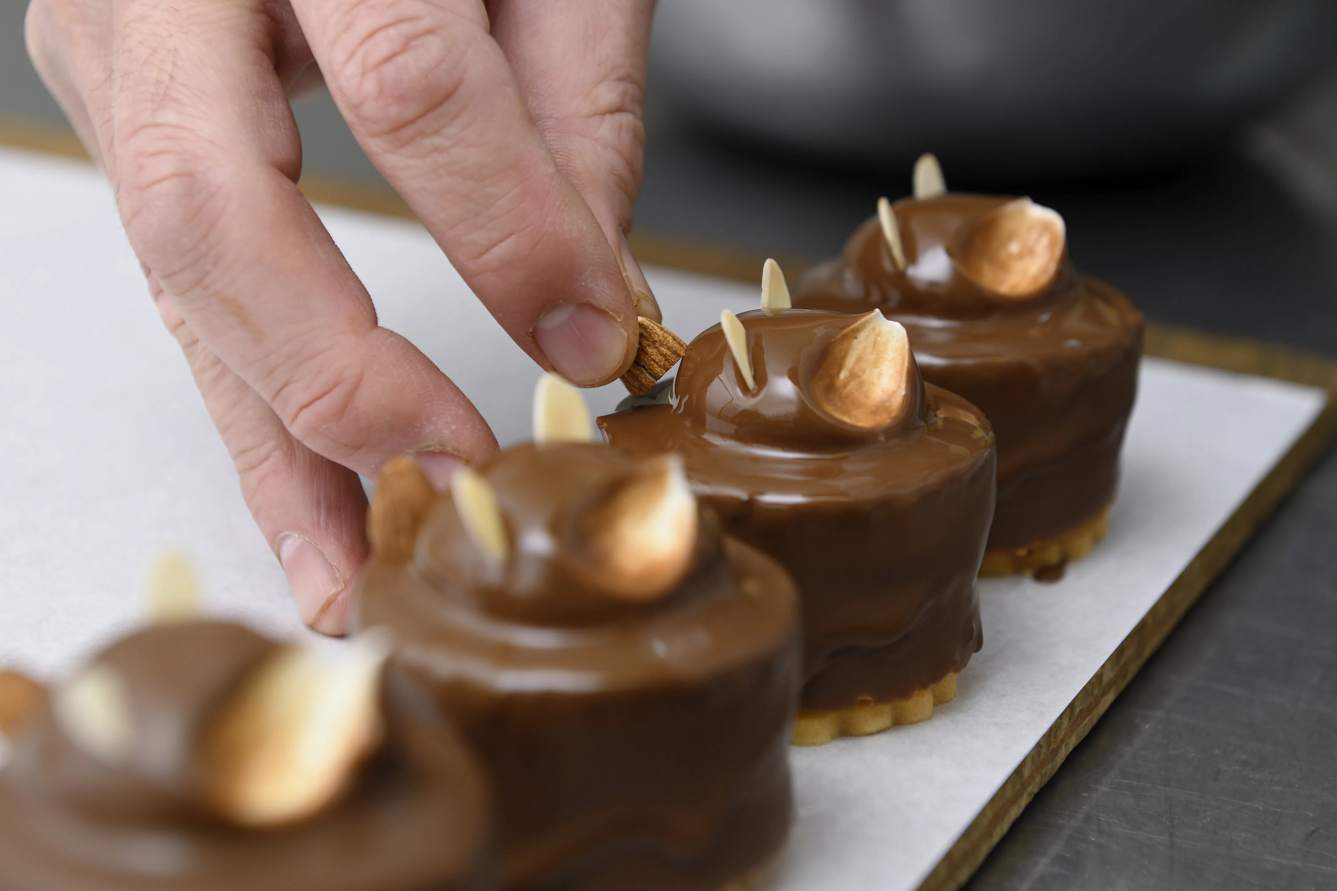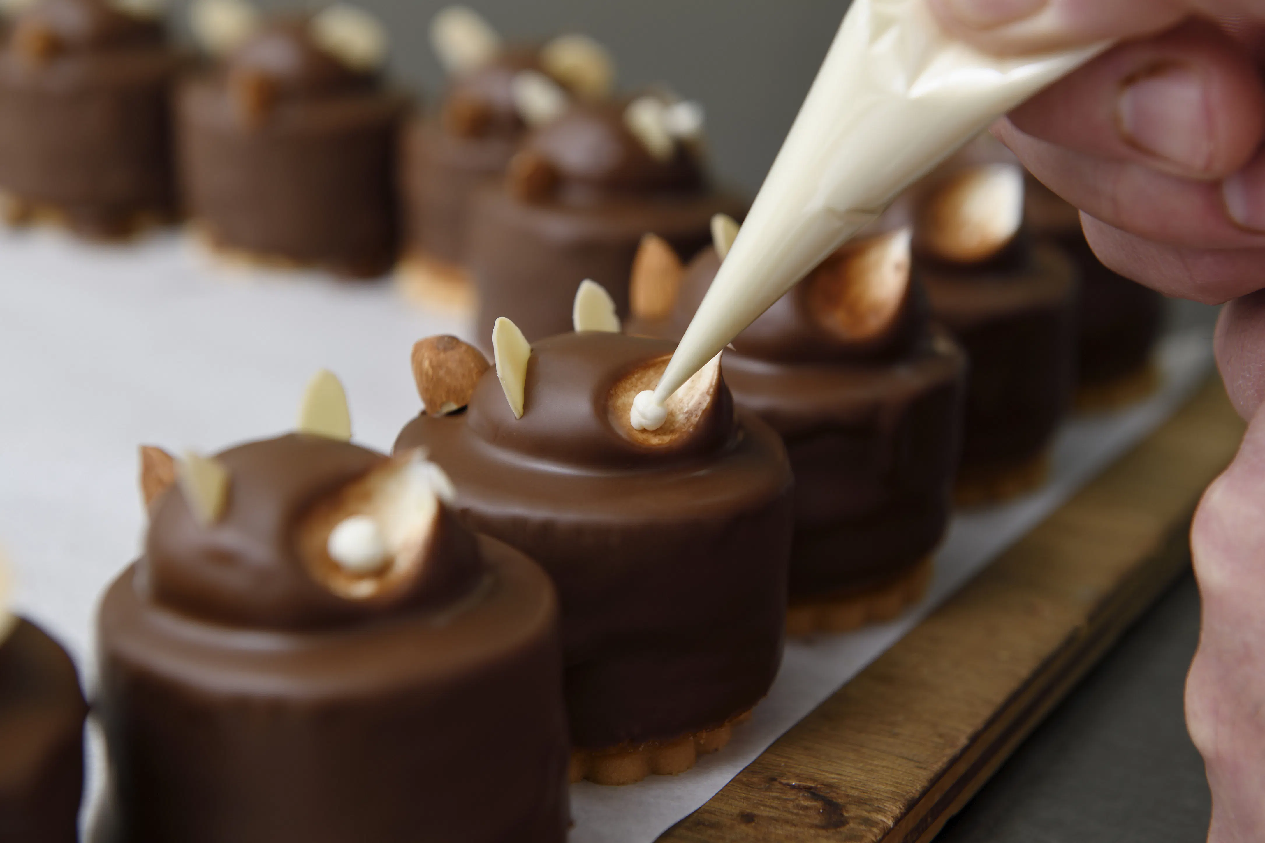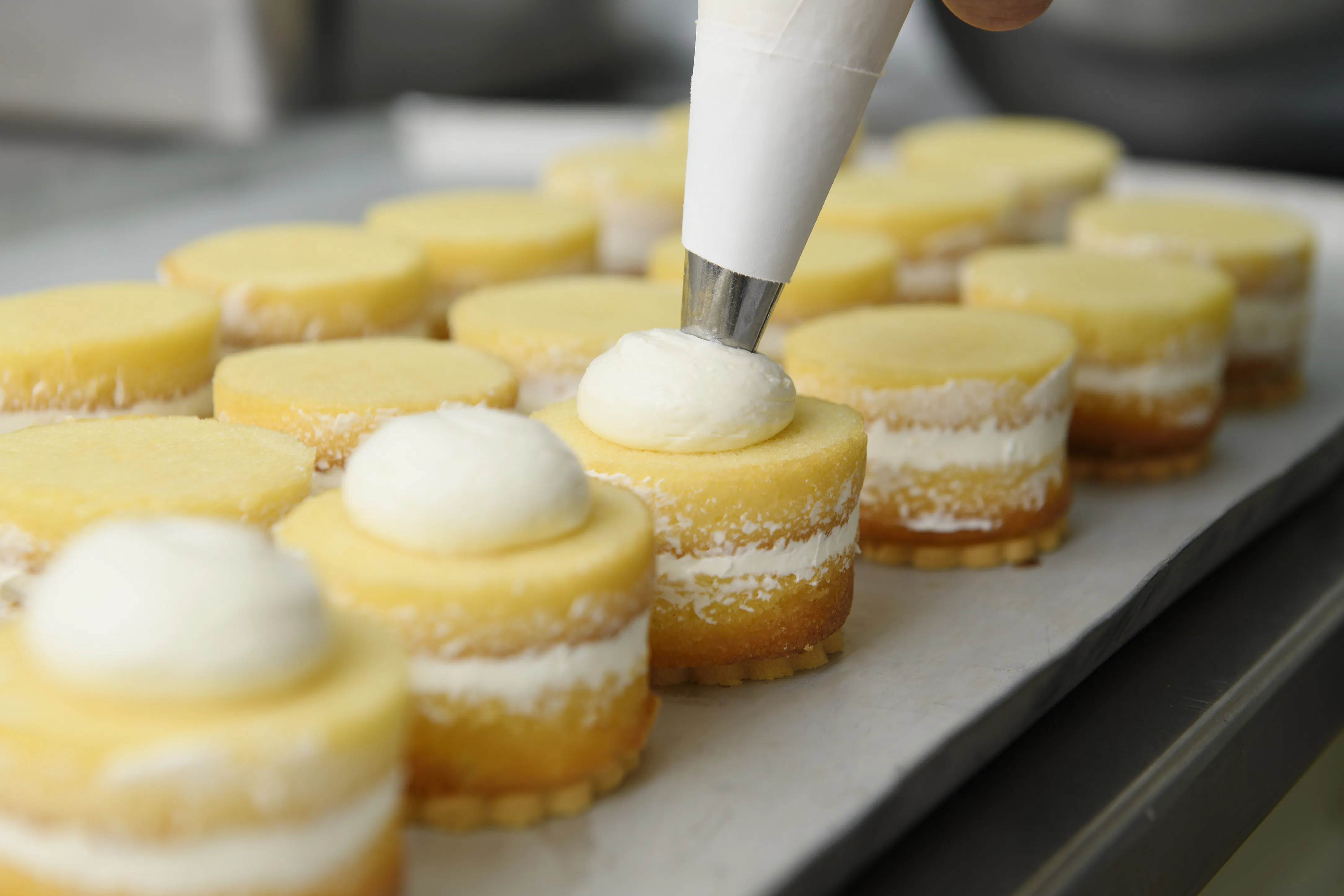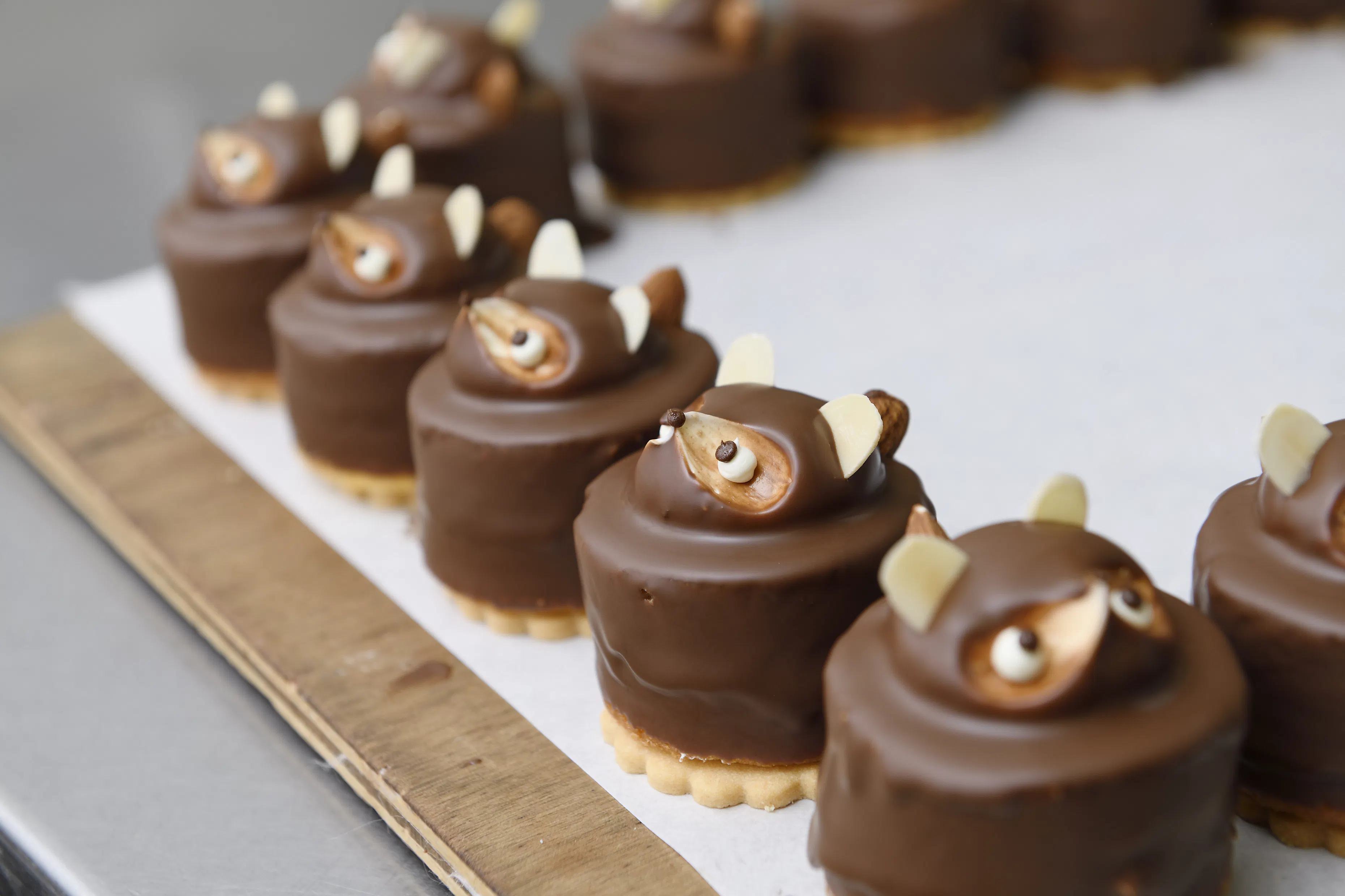 スポンジにバタークリームを絞って、クリームでコーティング。目や鼻を作って仕上げるのですが、表情はお店や作り手によってさまざまです。