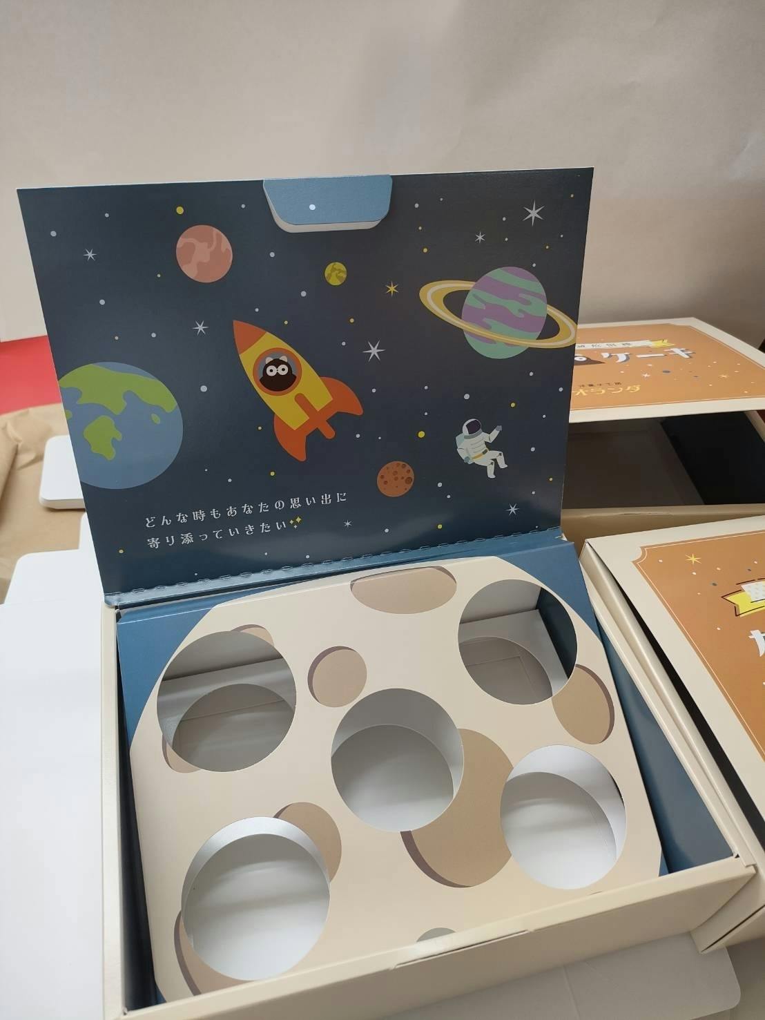 理由は、たぬきケーキの形をキープできる箱がなかったから。
