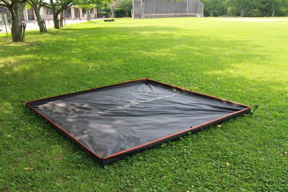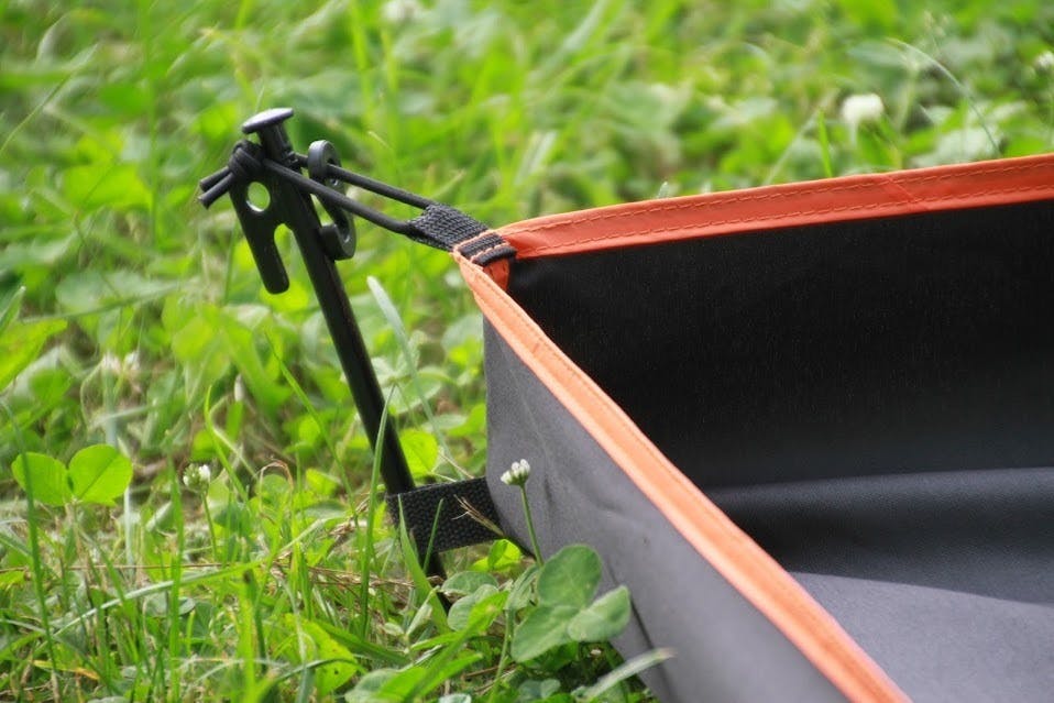 このマルチシートは四隅をペグで止めることでシートの4辺が立ちます。