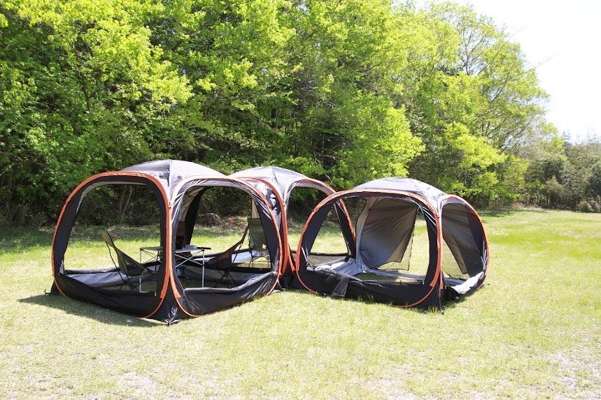 そこで、キャンピングカーがなくても、快適に家族で出かけられる方法を考え「簡単に設営できて、あらゆる場所で使えて、家族でゆったりとした時間を過ごせる快適な空間のテントを作ればいいんだ!」というアイデアを閃きました。