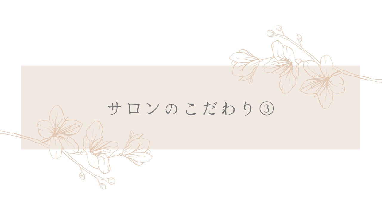 また店内の香りにもこだわりがあり、店内に入った瞬間ほのかに香る優しい配合のオイルの匂い、瞬時にリラックスして頂けるような、そんな優しい空間でお待ち致しております。