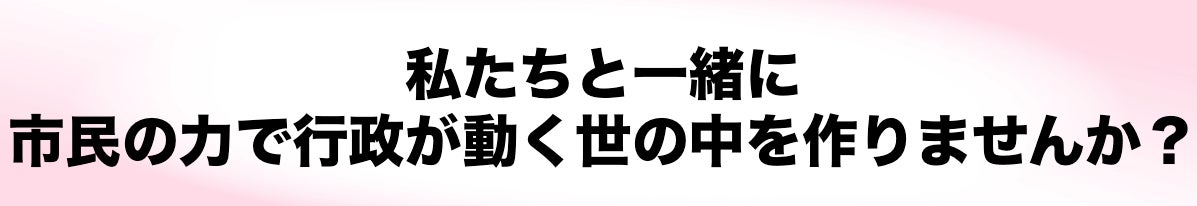 政治家、官僚、学校、メディアなど誰かに依存して不平不満を言うのではなく、市民自らが暮らしやすい環境へ変えていく新しい時代にシフトしていくために、さらに多くの方々の応援が必要です。