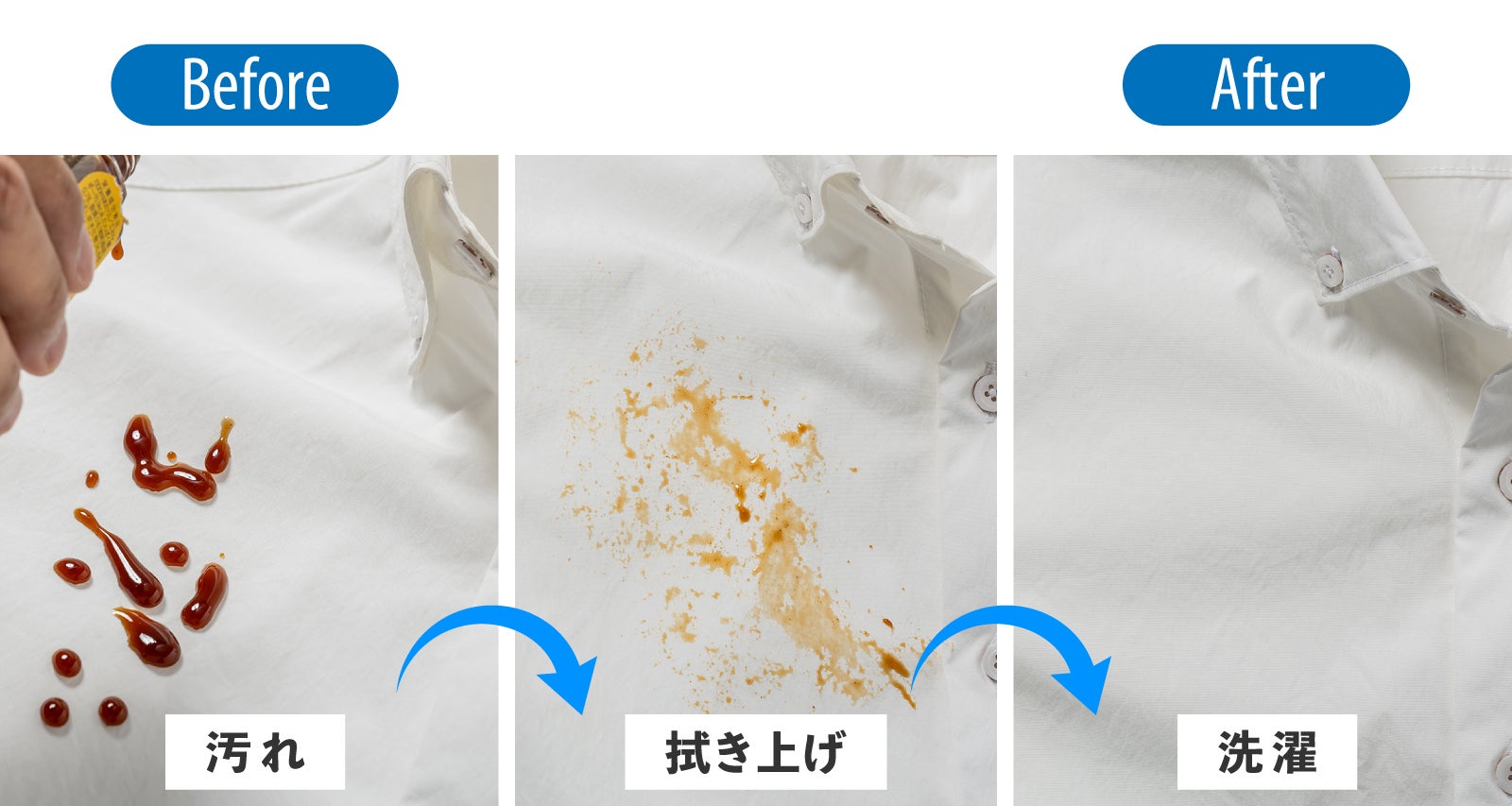 2段階の防御層で汚れを寄せ付けない白シャツを完成させました。