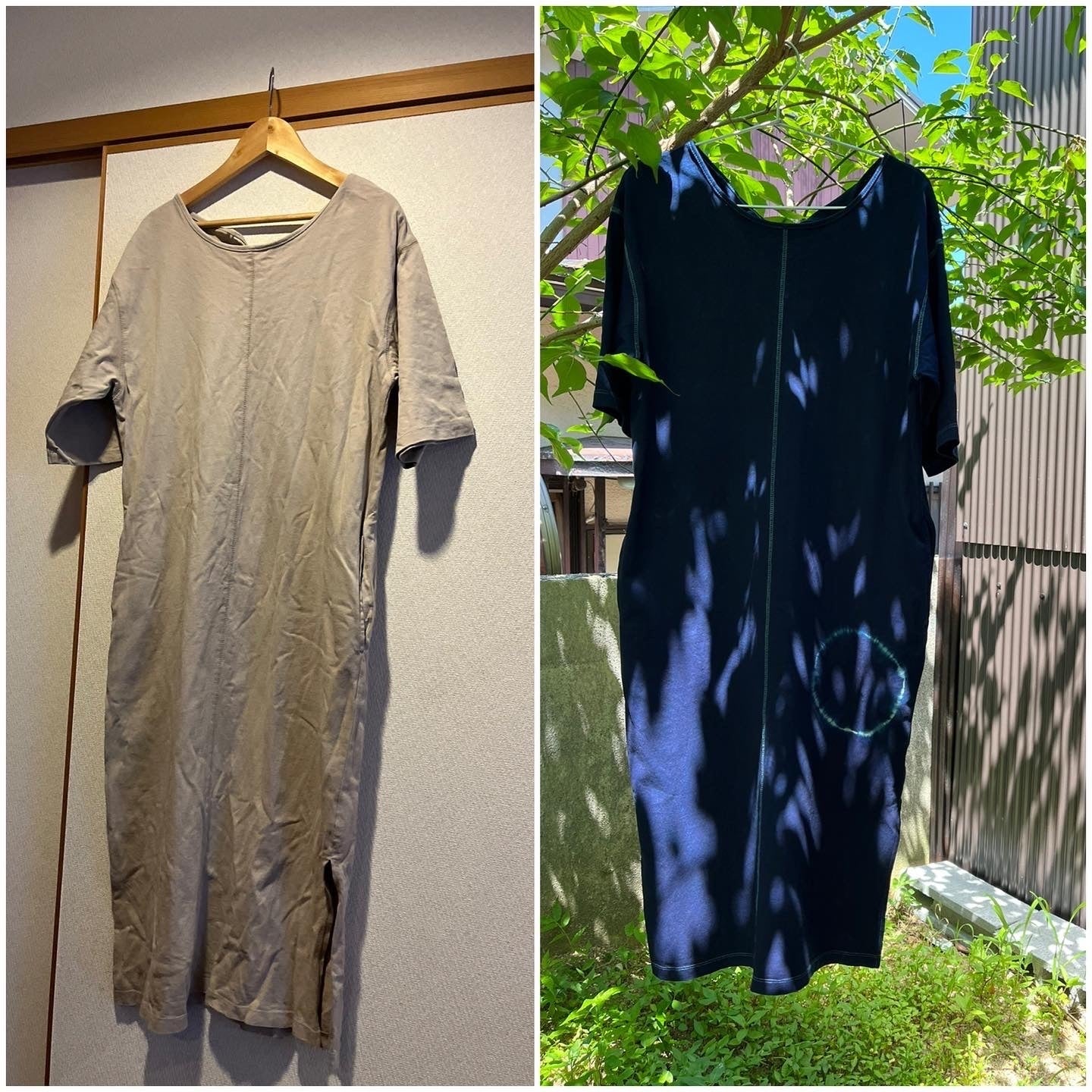 ちょっと汚れてしまった、というワンピースを染め替えさせていただきました!