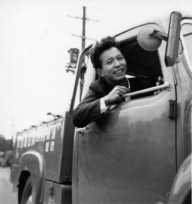 いわきで一番初めに配達トラックを導入したころの亡父 量一の写真