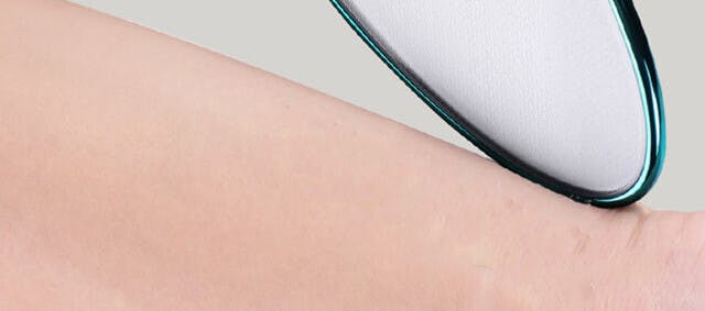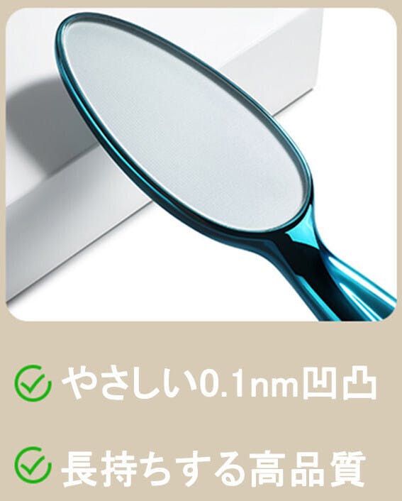 強力な特殊ガラスをベースに、ナノ技術で作られた超微細粒子の突起物でできたヤスリの面を擦ることでお肌をピカピカに仕上げることができます。目がきめ細かいガラス表面のやすりタイプは肌を傷付けにくく、乾燥した状態の肌や、ひじやひざにも使用できます。