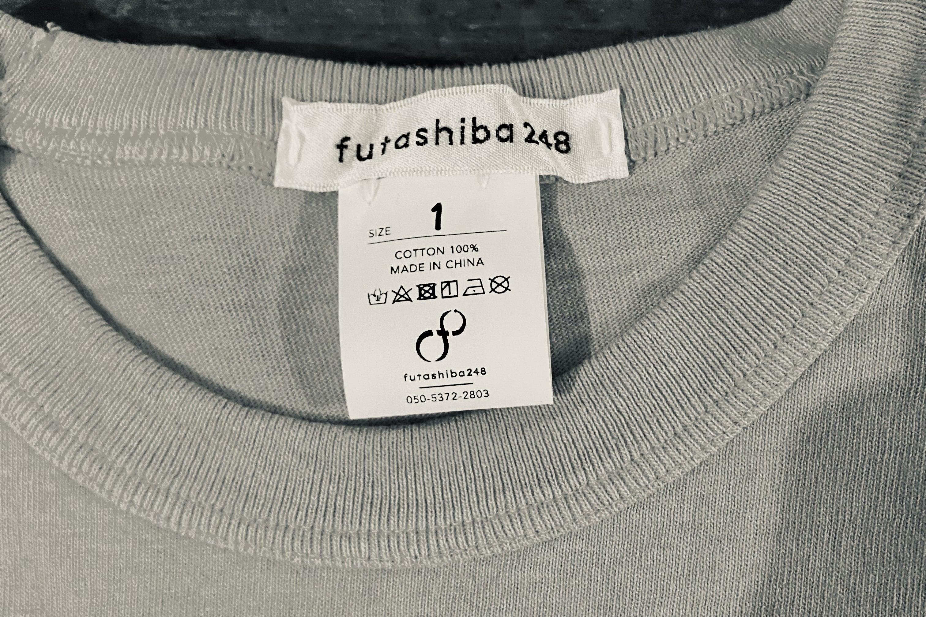通常はサイズ・洗濯方法・連絡先が書かれた品質表示タグを付けなくてはならないのですが、こちら着用時にカサカサする為今回は縫い付けておりません。