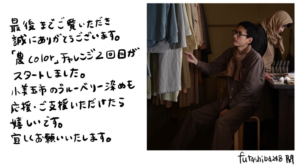 茨城県44市町村を染め上げた暁には、茨城を巡る農color本を出版、農colorファッションショーを開催するなど世代問わず楽しめ交流できるイベントを開催したいです。